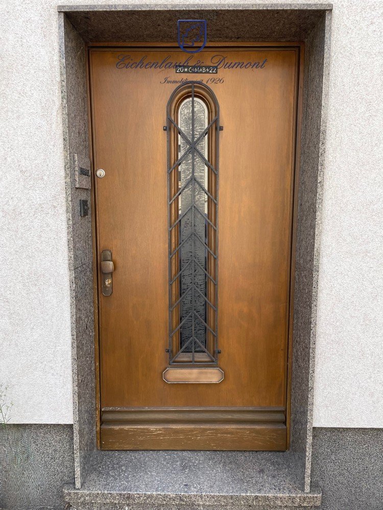 Die Wohnung in den Obergeschossen ist über ein separates Treppenhaus erreichbar.