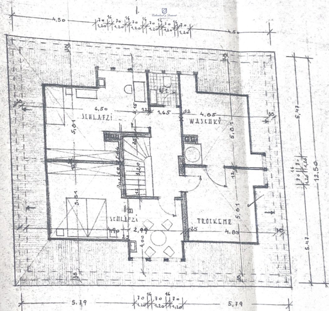 Das Dachgeschoss beherbergt drei Zimmer, ein WC und eine Waschküche.