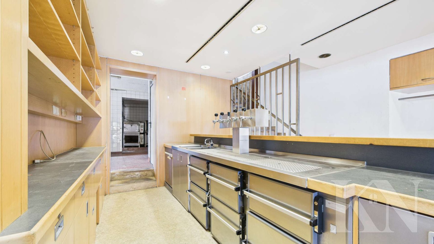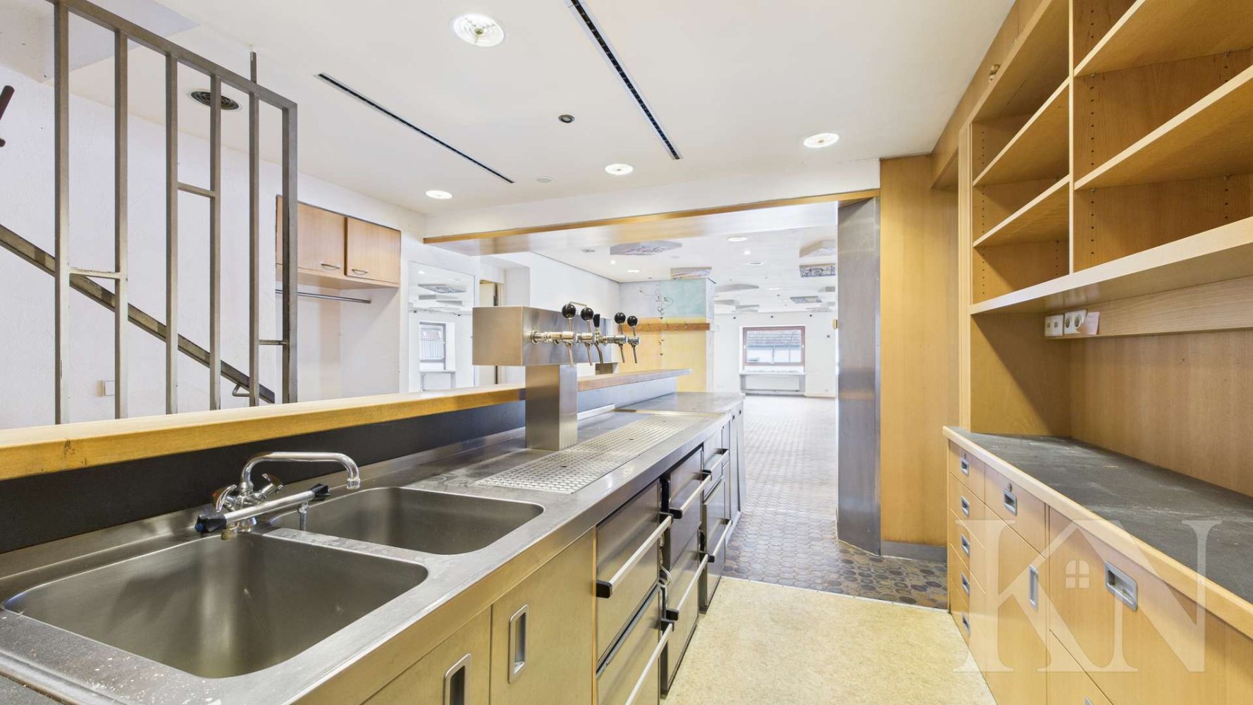 Das Objekt erstreckt sich über zwei Etagen, die sowohl gemeinsam als Gesamtfläche als auch separat angemietet werden können. Eine großzügige gewerbliche Küche ist vorhanden, ebenso Gäste-WC-Anlagen, Nebenräume sowie eine klare Struktur der Etagen.
