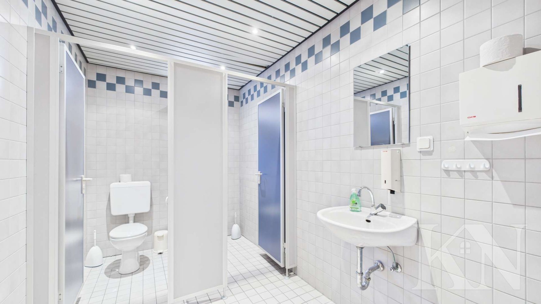 Die sanitären Anlagen sind gepflegt, funktional und auf jeder Etage getrennt nach Damen und Herren vorhanden. Ergänzend stehen im Untergeschoss zwei separate Kellerräume zur Verfügung, die bereits in der Miete enthalten sind und sich ideal als Archiv- oder Lagerräume nutzen lassen.