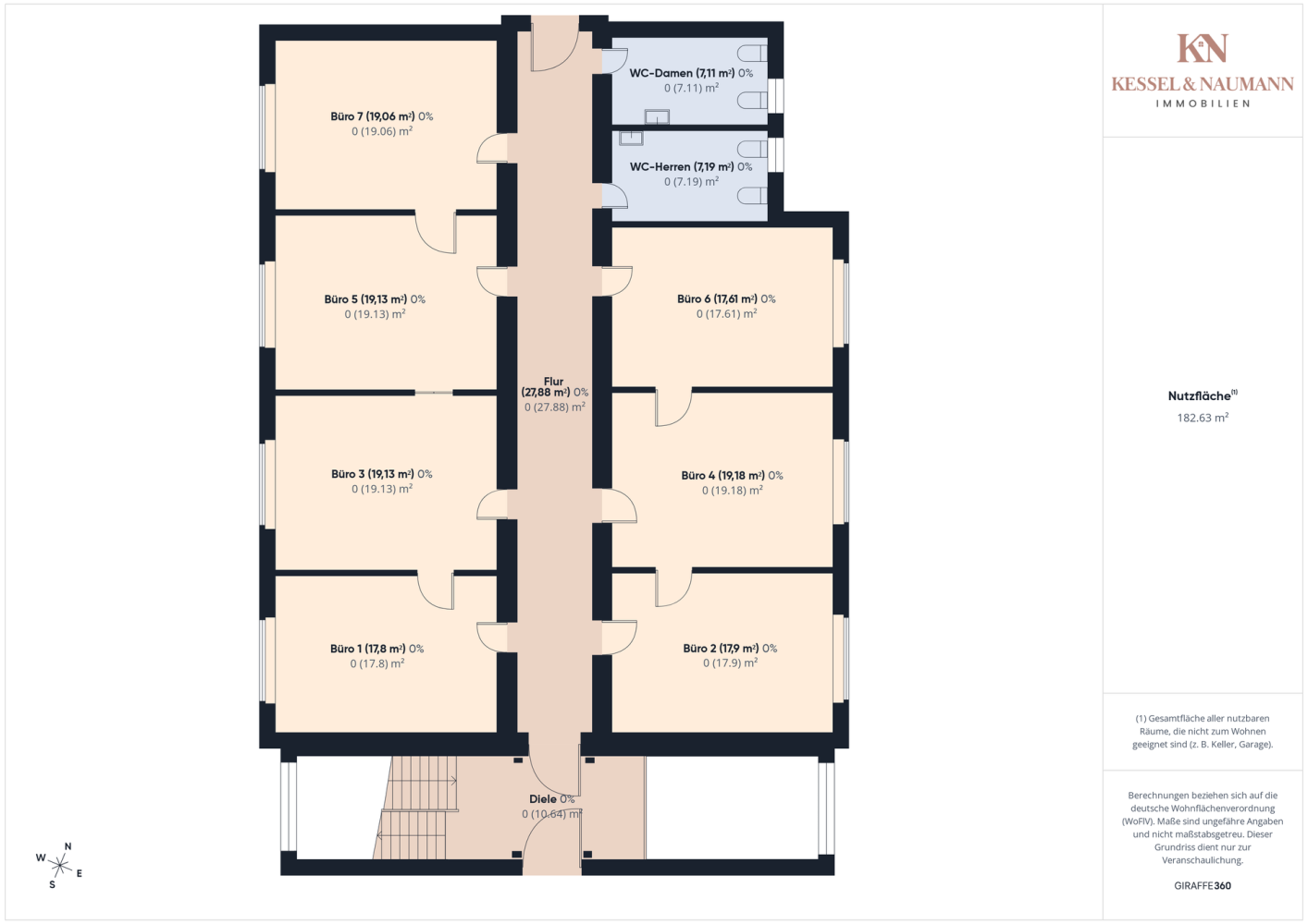 Insgesamt ca. 614,42 m² Nutzfläche (Büroetagen + 2 Kellerräume)