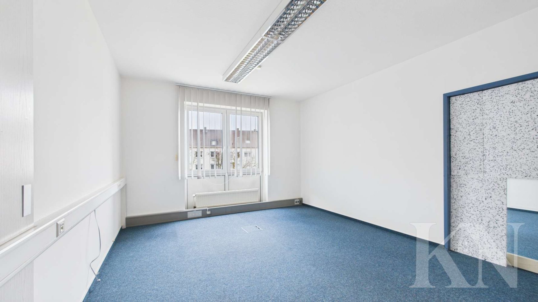 Die Büroräume präsentieren sich hell, gepflegt und funktional. Große Fensterflächen sorgen auf allen Ebenen für eine angenehme natürliche Belichtung. Die Räume sind überwiegend mit strapazierfähigem Teppichboden ausgestattet und verfügen über abgehängte Decken mit integrierter Beleuchtung, ideal für den täglichen Büro- und Verwaltungsbetrieb.