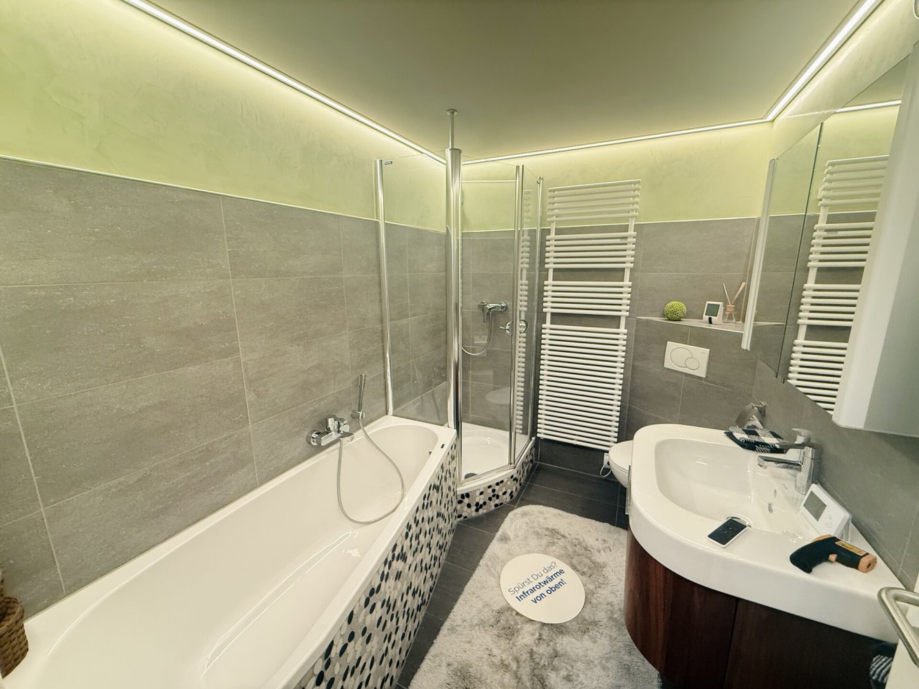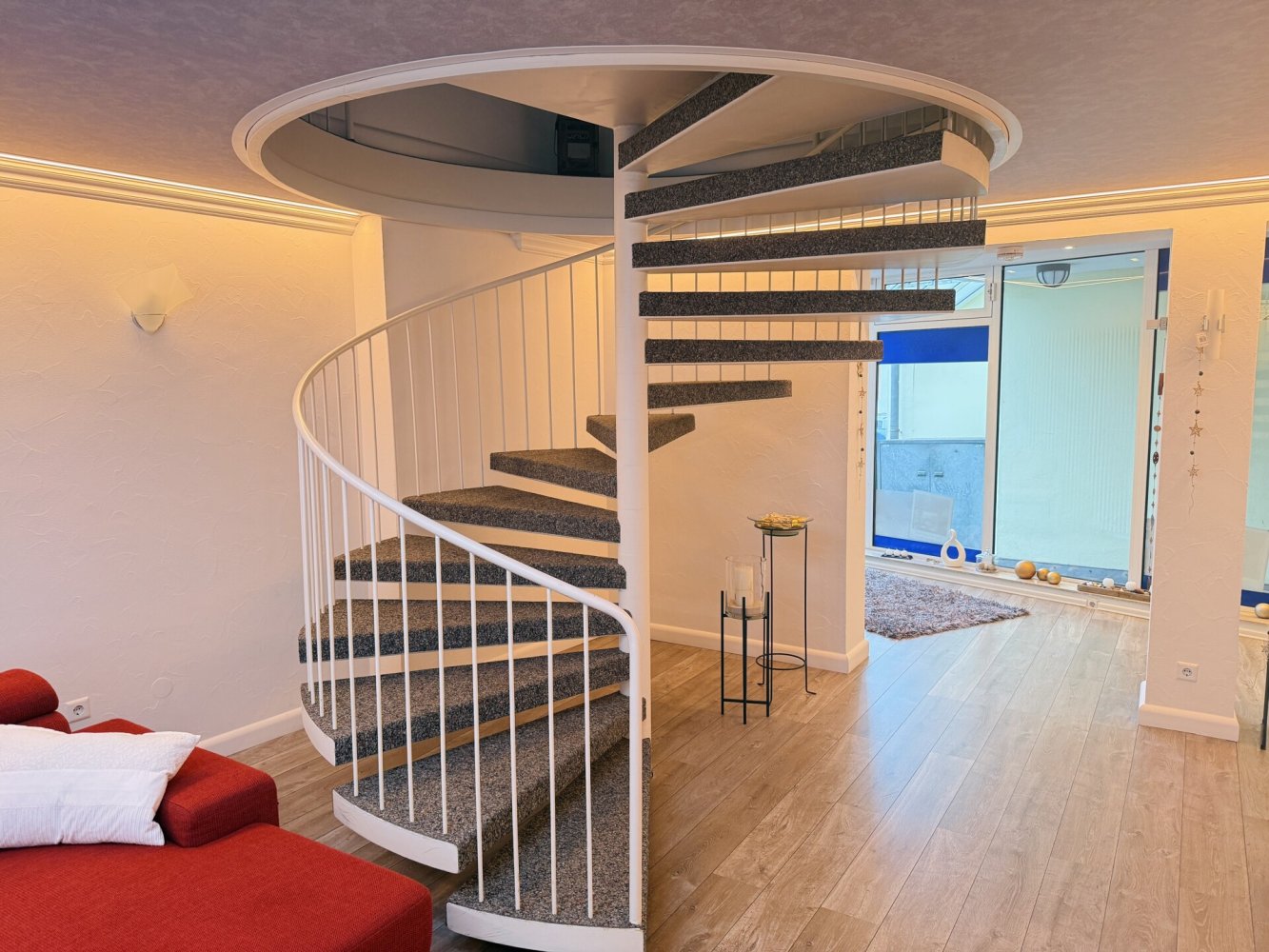 Die Räumlichkeiten befinden sich insgesamt in einem sehr gepflegten und aufwendig renovierten Zustand. Im Zuge umfangreicher Modernisierungsmaßnahmen im Jahr 2009 wurden unter anderem teilweise neue Trockenbauwände errichtet, Laminatböden verlegt, der Belag der Wendeltreppe erneuert sowie Elektro- und Wasserleitungen in Teilen modernisiert. Darüber hinaus wurde eine hochwertige Einbauküche installiert, ein modernes Badezimmer mit Badewanne, Dusche und zusätzlicher Infrarotheizung geschaffen, sämtliche Decken inklusive Beleuchtung neu gestaltet und die Wände mit ansprechendem Edelputz versehen.