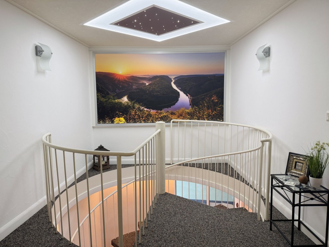 Das Obergeschoss ist über eine stilvolle Wendeltreppe erreichbar und besticht durch eine offene Galerie, die einen attraktiven Blick in den unteren Eingangsbereich ermöglicht. Auf dieser Ebene befinden sich ein separates Büro, ein Besprechungsraum, ein Badezimmer sowie zwei getrennte WC's - ideale Voraussetzungen für eine klare Trennung von Kunden- und Arbeitsbereichen.