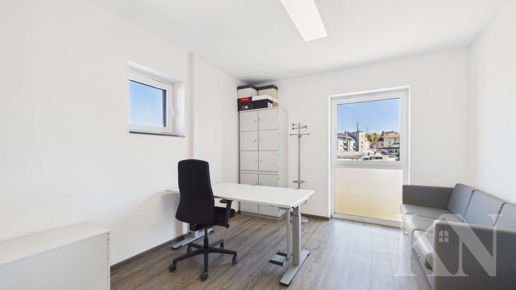 Besonders hervorzuheben sind die großen Fensterflächen, die für eine helle und angenehme Arbeitsatmosphäre sorgen. Der großzügige Balkon stellt zudem einen echten Mehrwert dar – ideal für Pausen oder als zusätzlicher Aufenthaltsbereich. Die Beheizung erfolgt komfortabel über eine moderne Fußbodenheizung – klassische Heizkörper sind nicht vorhanden, was für ein angenehmes Raumklima sowie eine flexible Raumgestaltung sorgt.