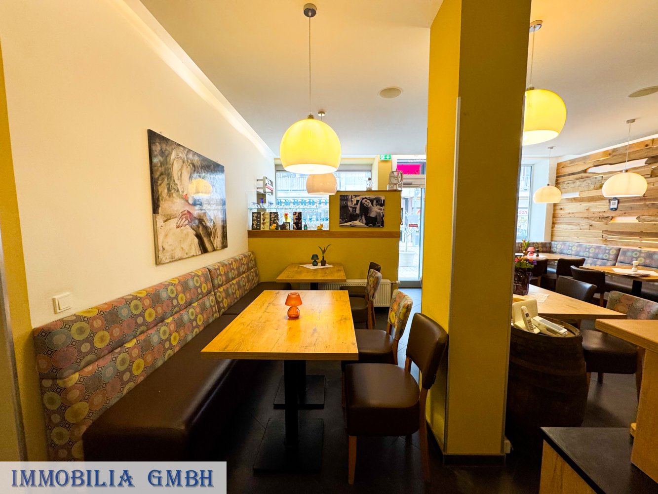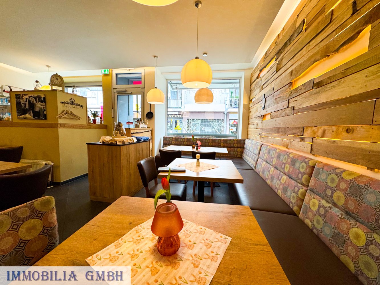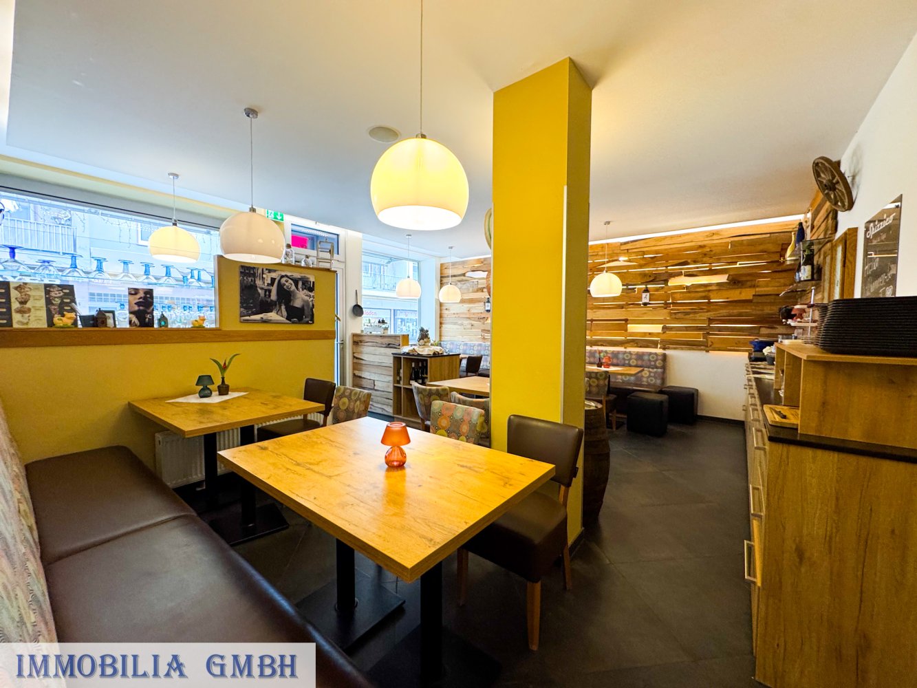 Der Innenbereich bietet Platz für ca. 60 Gäste und überzeugt durch ein durchdachtes Design- und Beleuchtungskonzept, das eine einladende und hochwertige Atmosphäre schafft. Ergänzt wird das Angebot durch eine ca. 30 m² große Terrasse in der Fußgängerzone mit etwa 20–25 Außenplätzen sowie eine zusätzliche Außentheke für den Eisverkauf, die insbesondere in den Sommermonaten für zusätzliche Frequenz sorgt.
