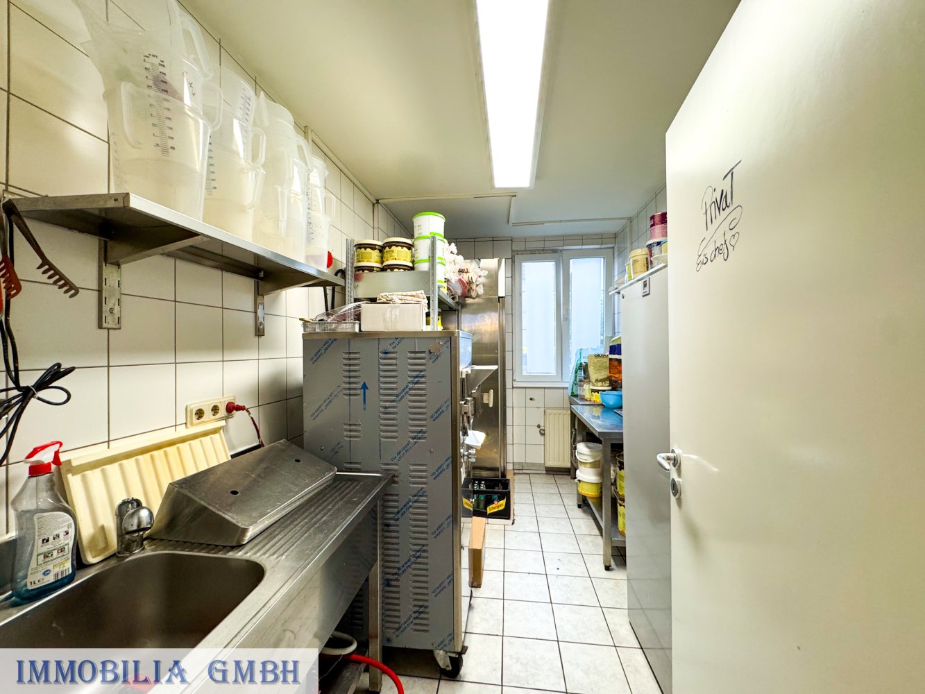 Die im Erdgeschoss eines gepflegten Mehrparteienhauses gelegene Fläche gliedert sich in zwei Hauptbereiche mit jeweils ca. 68 m² inkl. Nebenflächen. Der linke Bereich beherbergt das Café mit Eisdiele und eigenem Eislabor, während im rechten Eingangsbereich ein stilvoll gestaltetes Bistro mit Bar und Mittagstisch untergebracht ist. Beide Bereiche sind über einen internen Flur miteinander verbunden und ermöglichen sowohl getrennte als auch kombinierte Nutzungskonzepte.
