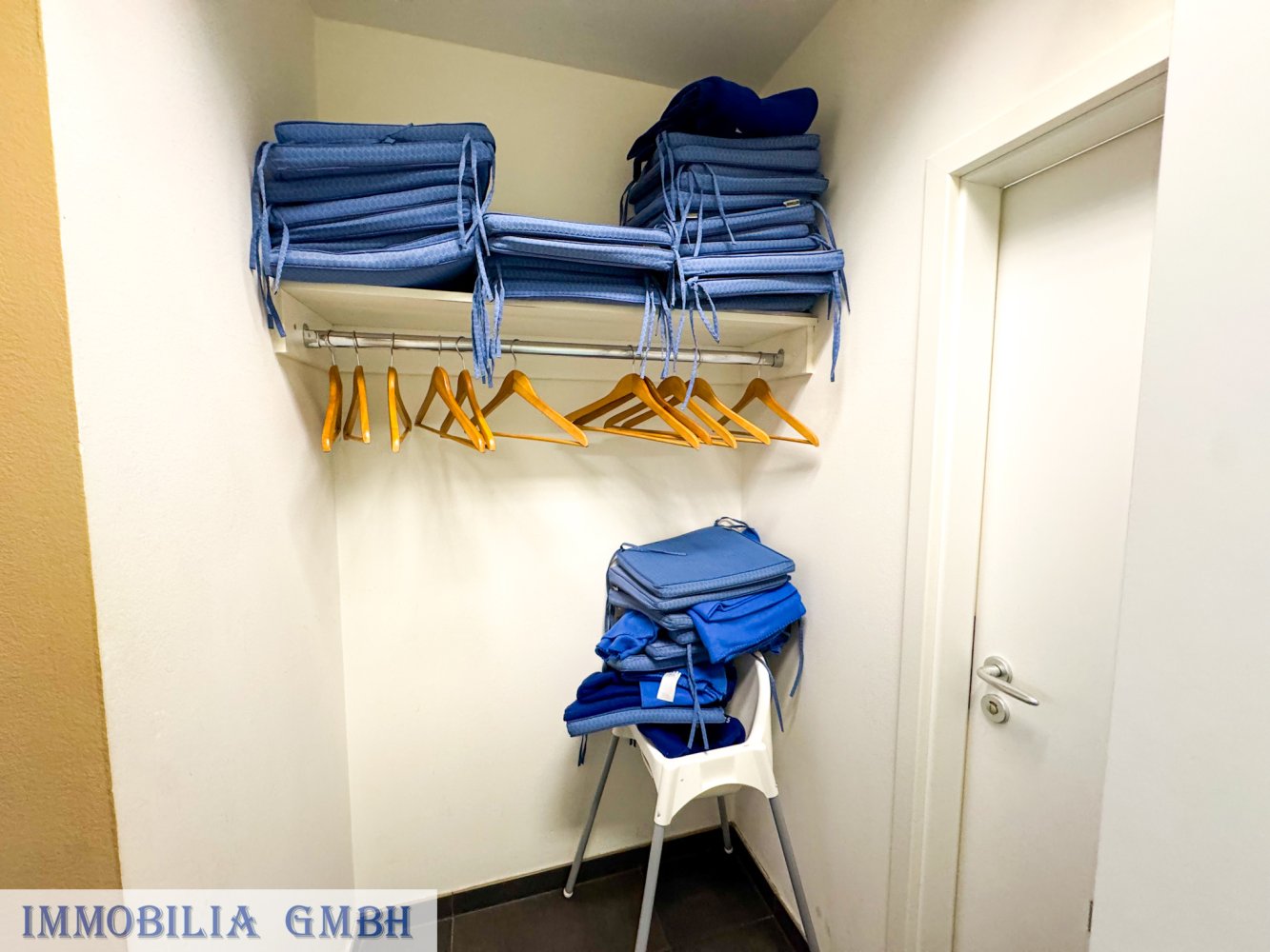 Die Gastronomiefläche wird vollständig möbliert und betriebsbereit übergeben. Sämtliche Elektro- und Gastronomiegeräte, eine hochwertige italienische Kaffeemaschine (FAEMA) sowie eine komplett ausgestattete Küche sind im Mietumfang enthalten. In den Nebenflächen befinden sich neben der Küche ein Eislabor mit Lagerflächen sowie getrennte Damen- und Herren-WCs. Weitere Abstell- und Lagermöglichkeiten stehen im Kellergeschoss zur Verfügung.