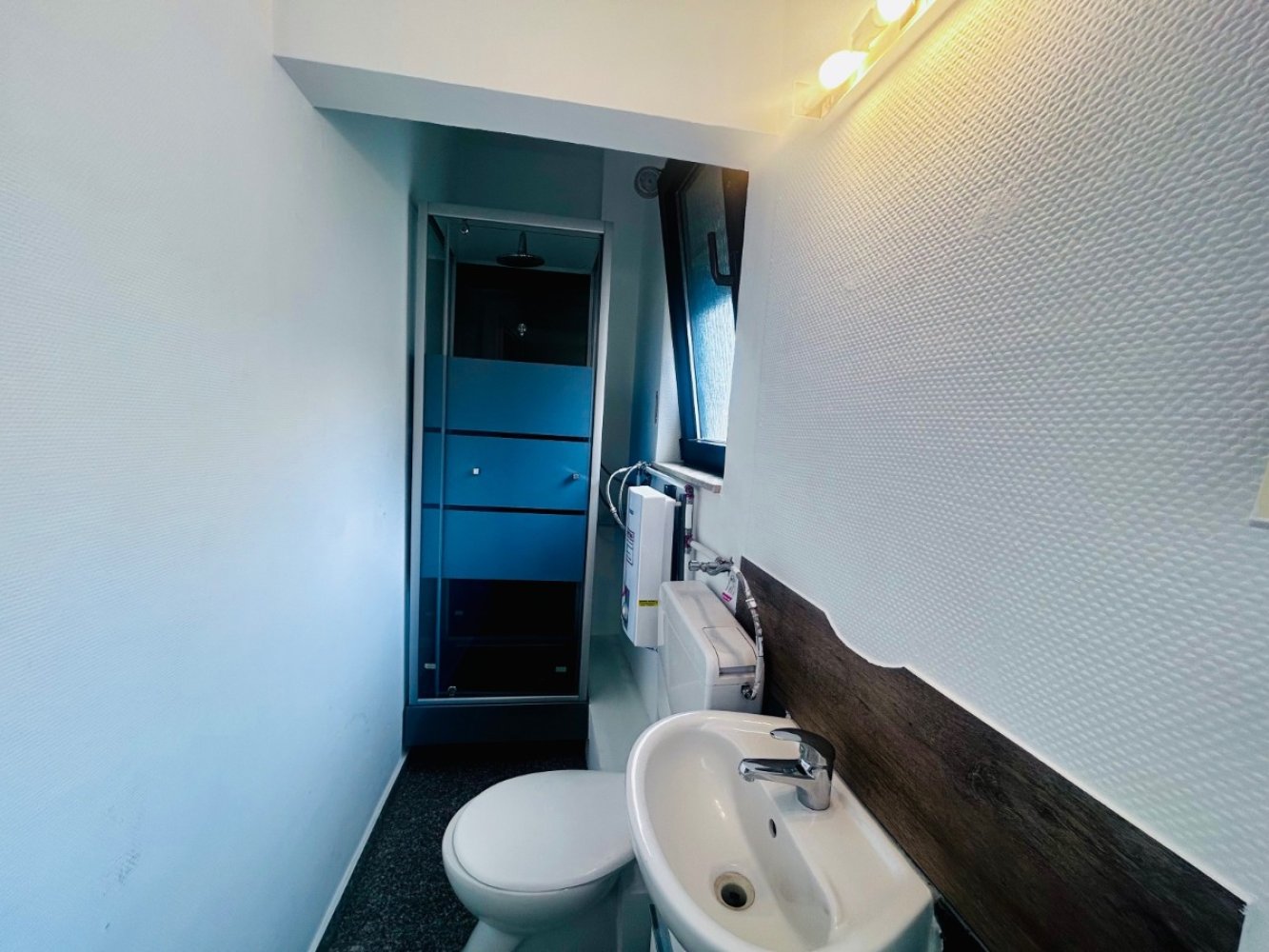 Das im Jahr 1965 massiv erbaute Haus präsentiert sich in einem gepflegten und gehobenen Zustand. Über die Jahre wurde kontinuierlich modernisiert: das Flachdach 2005 erneuert, die Gasheizung 2010 installiert (getrennte Versorgung für Wohnen und Gewerbe) und die Fenster in den oberen Etagen durch moderne Doppel- bzw.