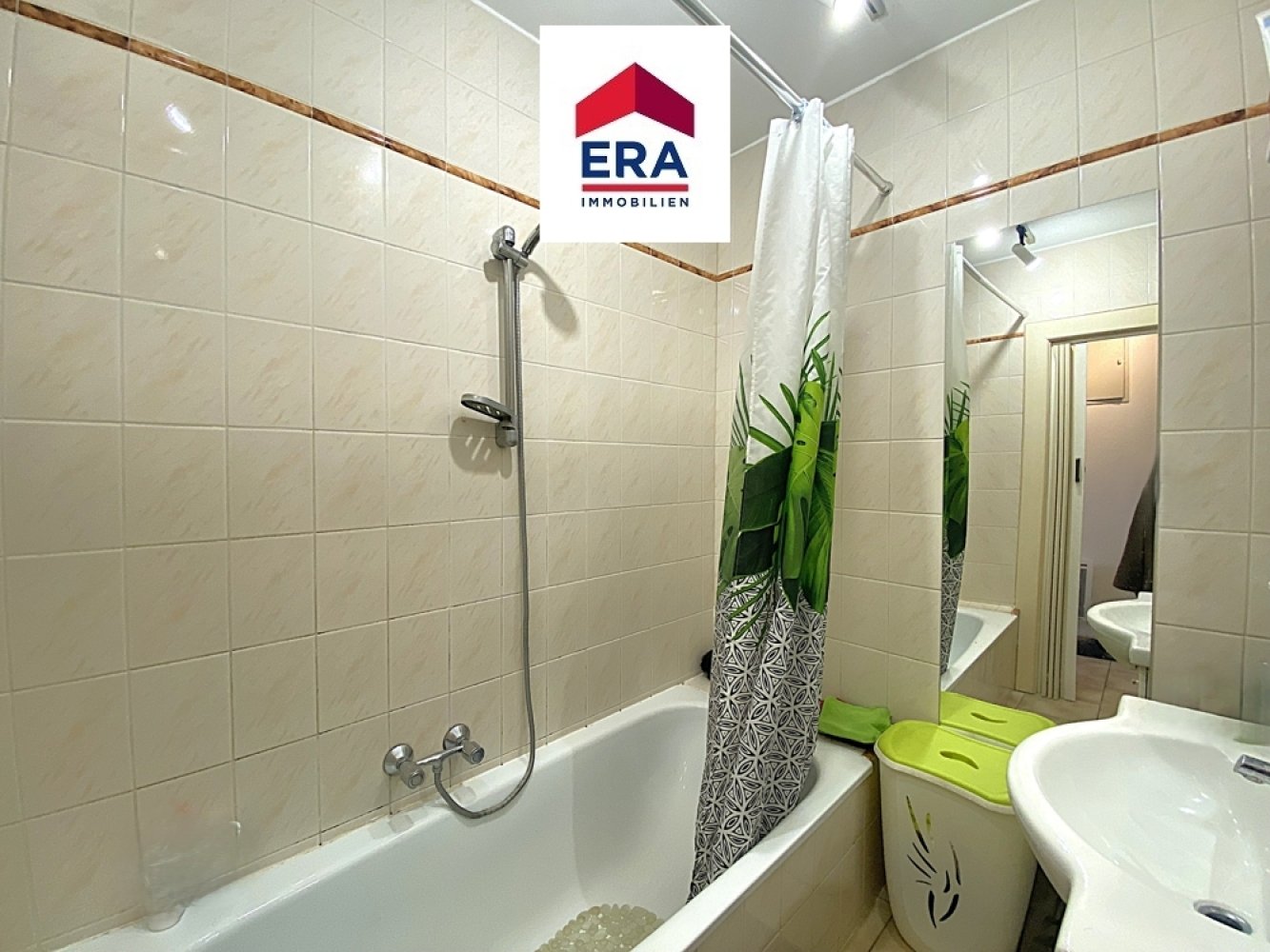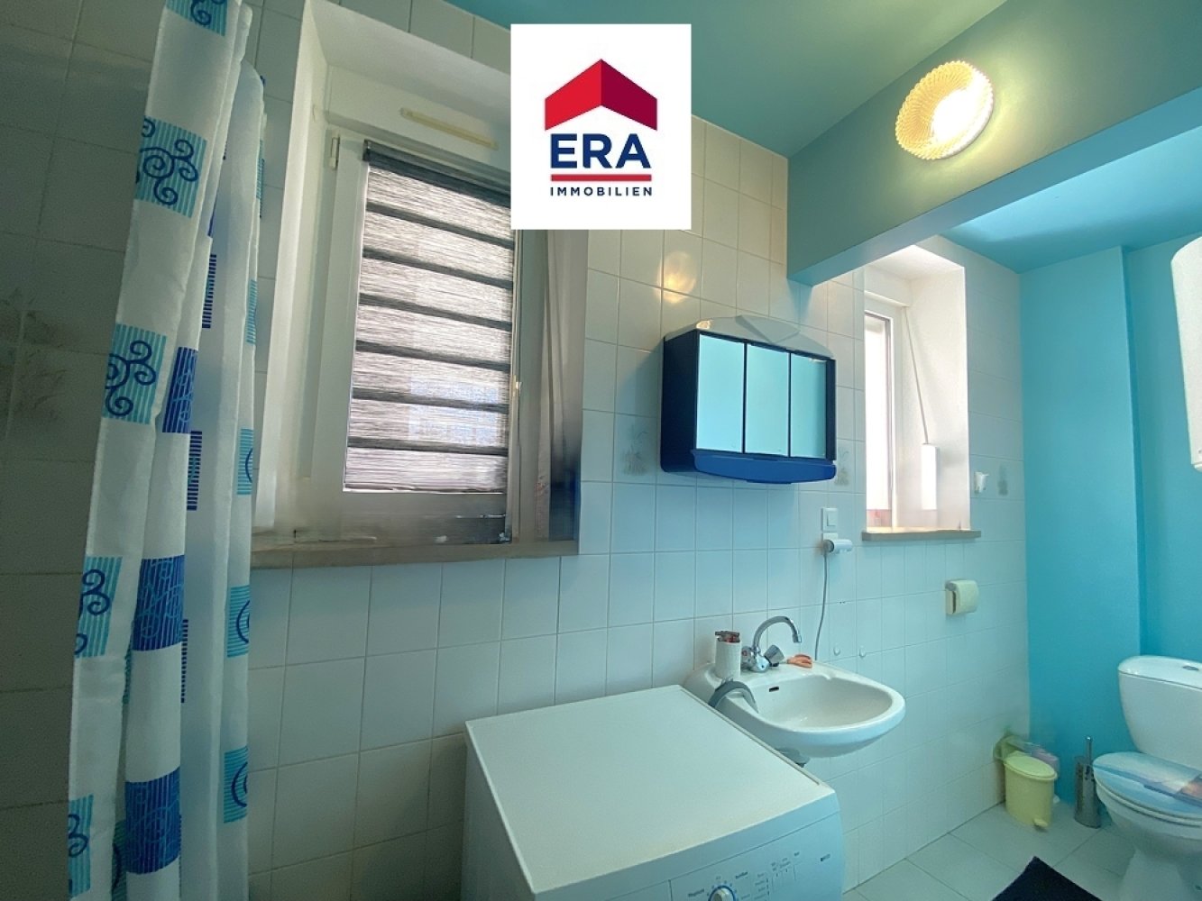 Die kleine Wohnung im EG mit 33m² verfügt über eine Küche mit Sitzbereich, ein Schlafzimmer und ein Tageslichtbadezimmer mit Dusche, Waschbecken, WC und Waschmaschinenanschluss.
