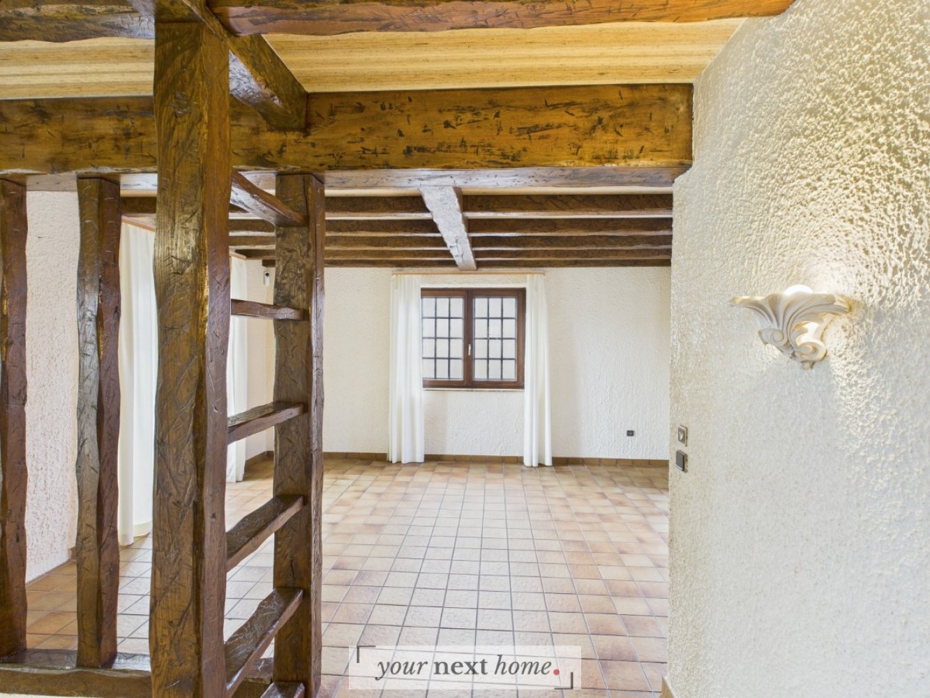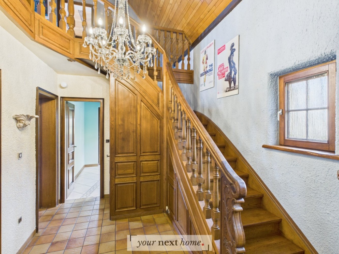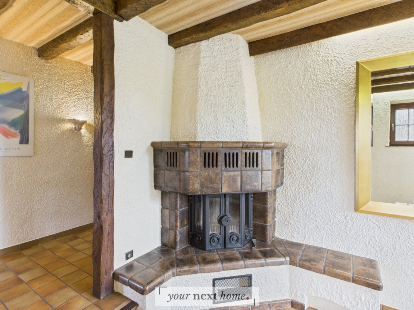 überdachte Terrasse mit Steinbackofen, geeignet für die Zubereitung von Pizza und Brot, Nostalgie-Holzklappläden, Kamin im Wohnzimmer, Edle Echtholz-Holztreppe im Flur,