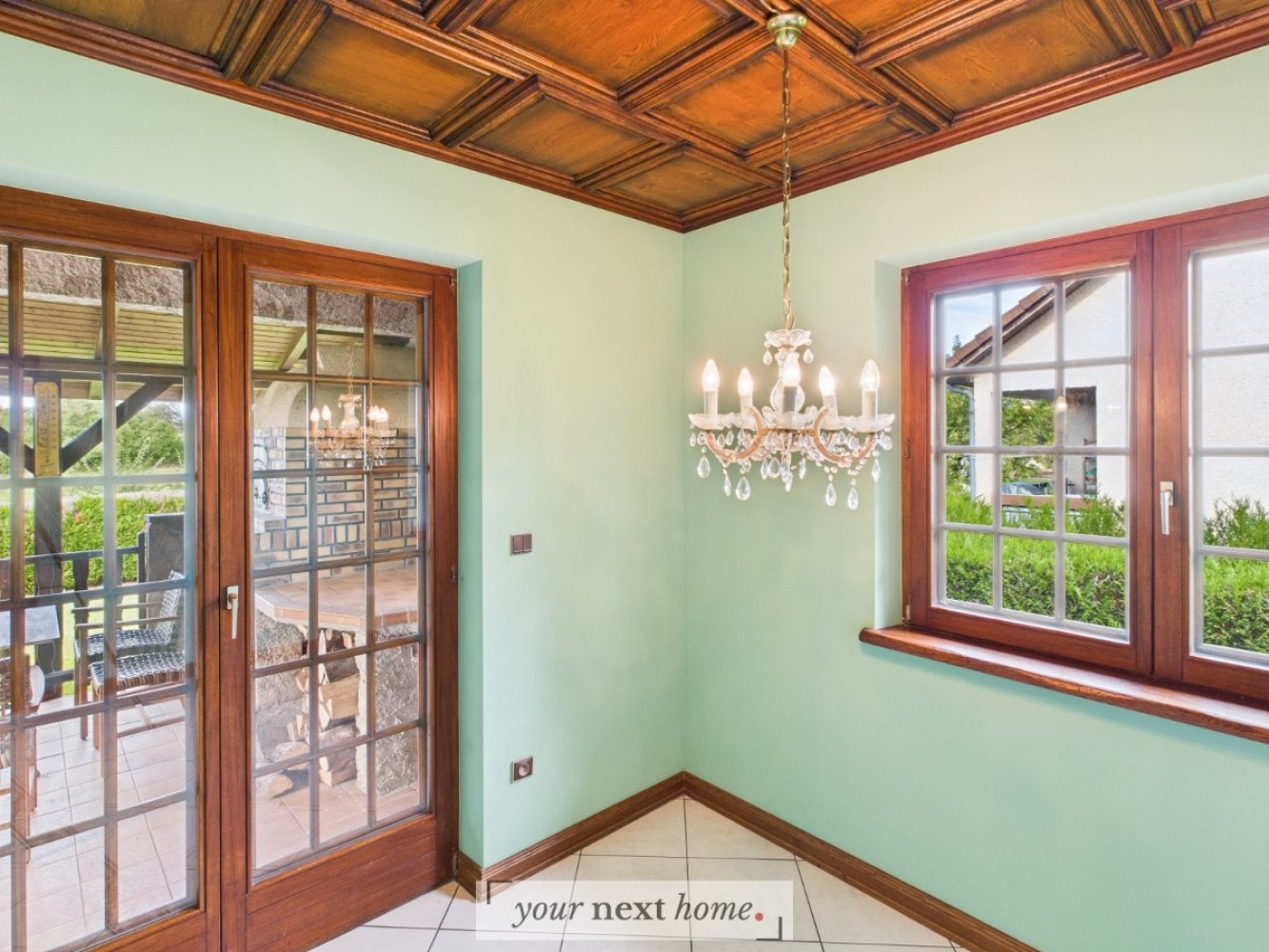 -Kaminzimmer mit Zugang zur Terrasse, Wohnzimmer mit direktem Ausgang in den Garten, Helle Küche mit hochwertiger Einbauküche (nicht im Kaufpreis enthalten) und zwei Ausgängen zum Außenbereich