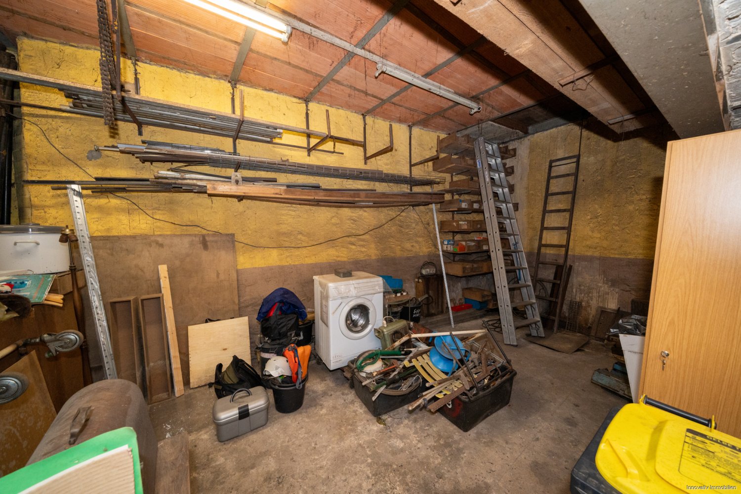 Im Erdgeschoss befindet sich auf einer Fläche von ca. 90 m² aktuell ein Ladenlokal. Hier waren in der Vergangenheit Verkaufsflächen unterschiedlichster Art beheimatet und wären auch in der Zukunft wieder denkbar. Weiterhin sind hier Lagerflächen, Kellerabteile und eine Großraumgarage zu finden.
