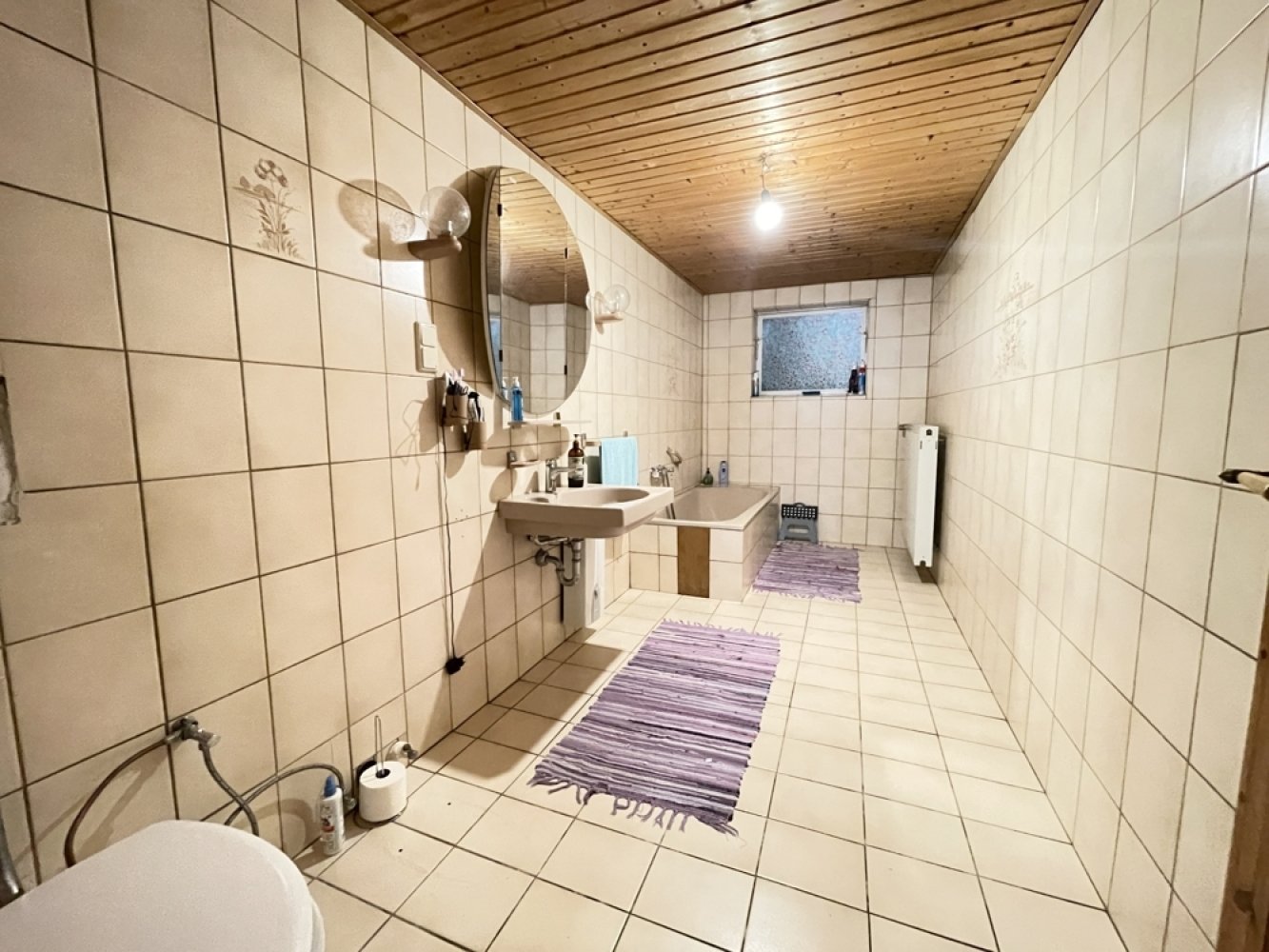 Im Erdgeschoss befindet sich ein Büro oder Schlafzimmer, ein großzügiges Badezimmer mit Badewanne, eine praktische Waschküche sowie die große Garage mit elektrischem Garagentor und Wartungsgrube ,ideal für Handwerker oder Auto-Liebhaber.