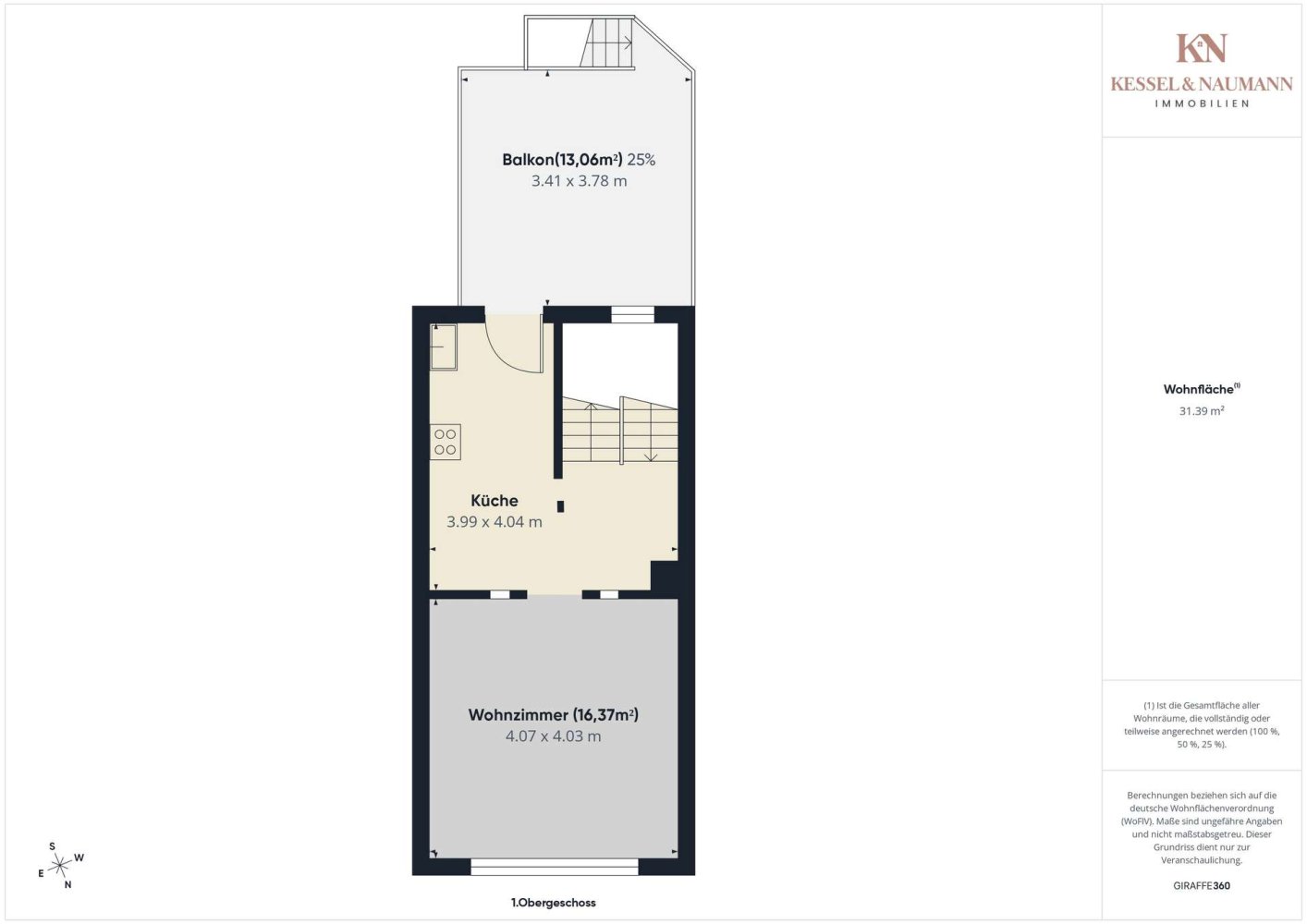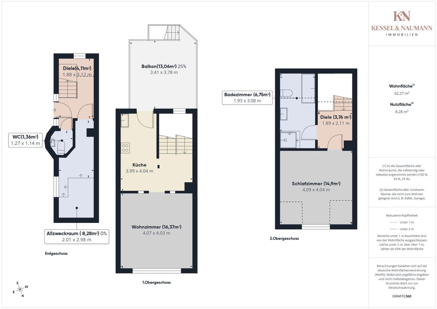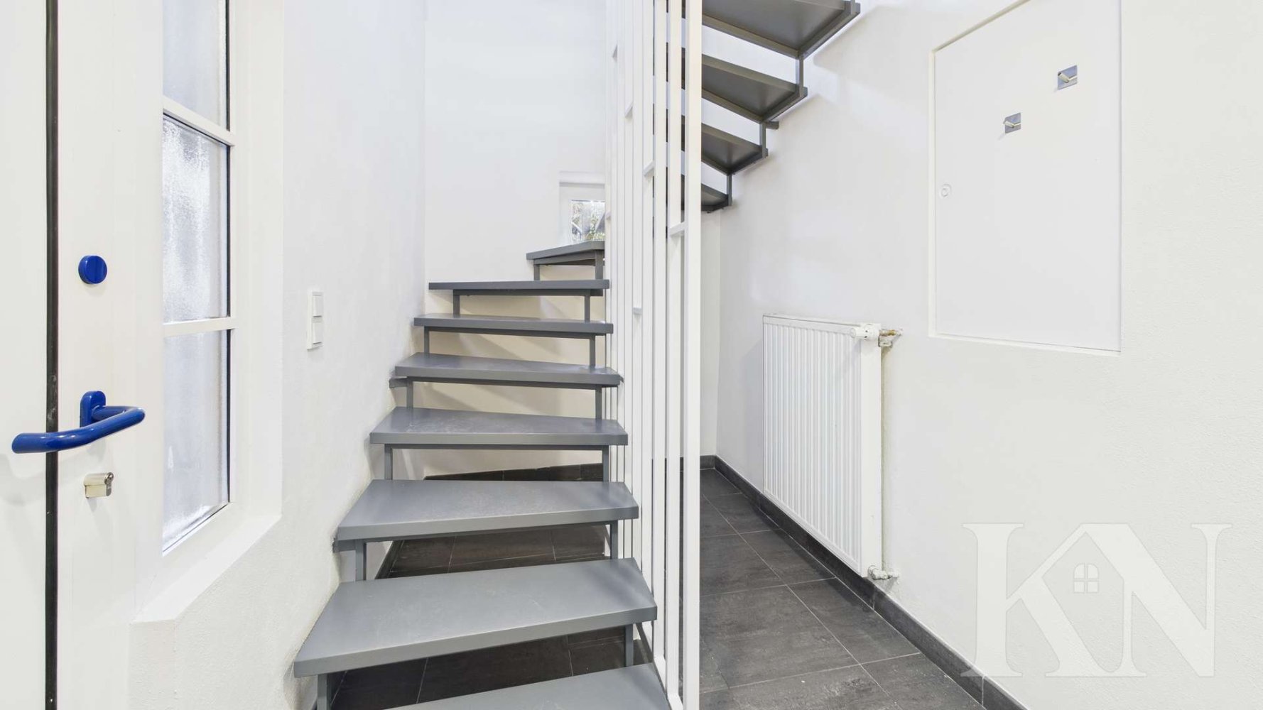 Der Eingangsbereich im Erdgeschoss bietet ein separates Gäste-WC sowie den Heizungsraum. Die charmante Wendeltreppe führt in das 1. Obergeschoss mit einer modernen Einbauküche und direktem Zugang zur Terrasse, von der Sie bequem in den Garten gelangen. Das angrenzende Wohnzimmer bietet eine angenehme Wohnatmosphäre und Platz für gemütliche Stunden.