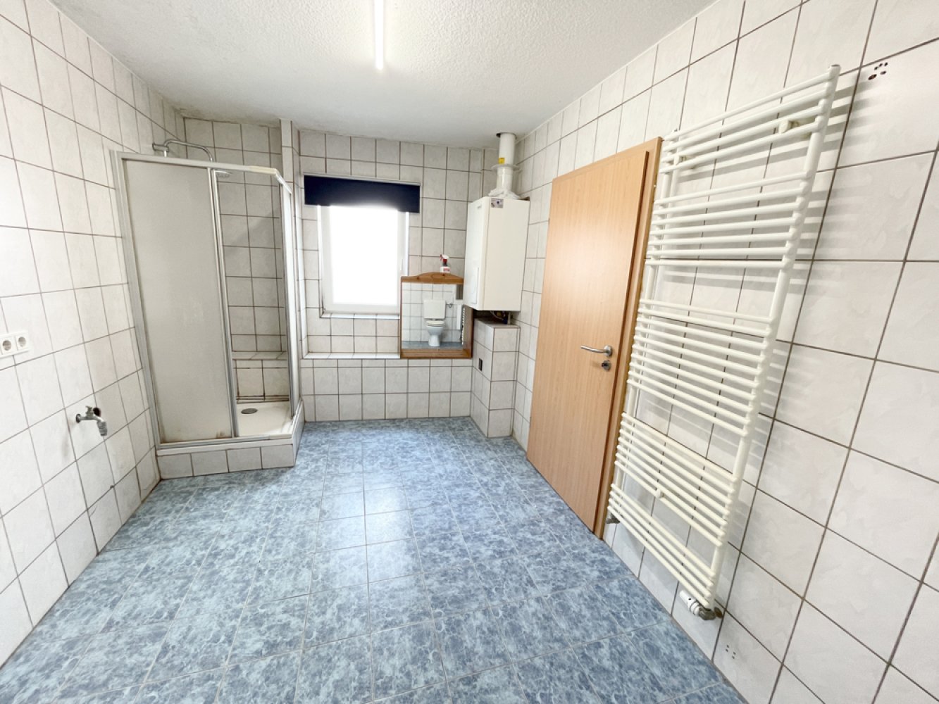 Erdgeschoss links: 1-Zimmer-Wohnung mit Küche und Bad, ca.