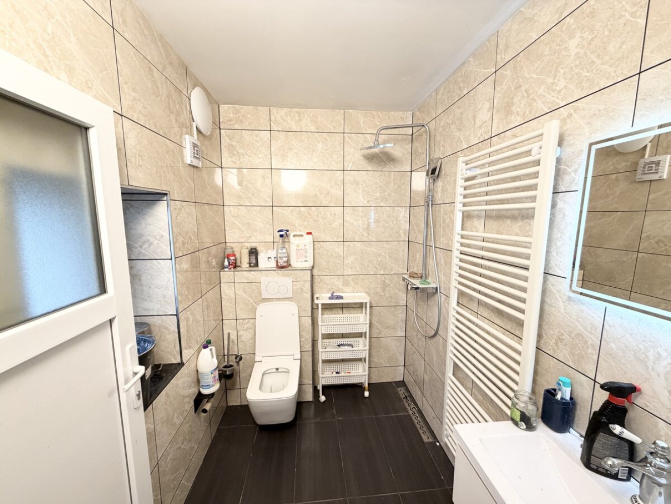 Es umfasst zudem ein weiteres Badezimmer mit Dusche und WC sowie einen Hauswirtschaftsraum.