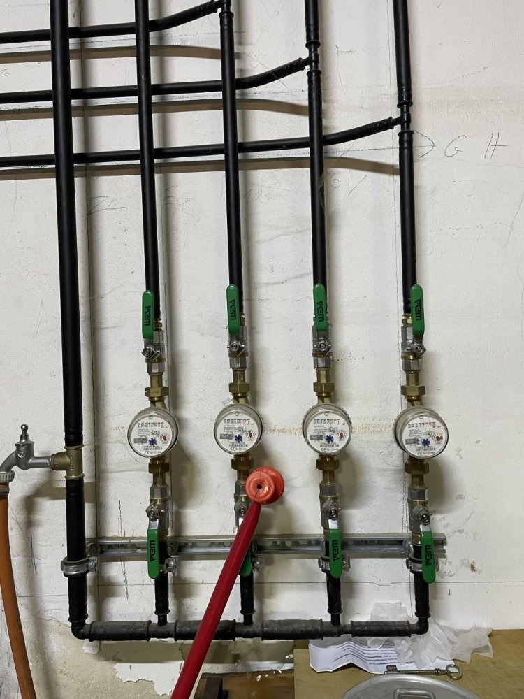 Die Versorgungsleitungen - Strom, Wasser sowie Heizung sind getrennt, das Warmwasser wird über Durchlauferhitzer bezogen.
