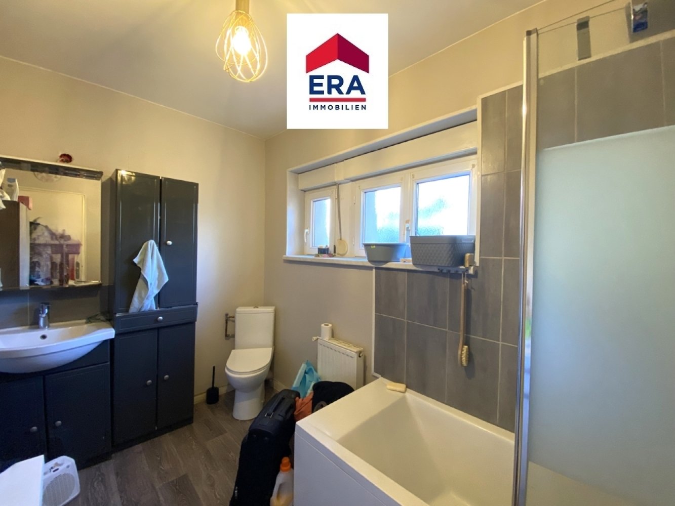 Das EG wurde aufgeteilt in Küche/Esszimmer mit Zugang zur Terrasse und Garten, dem Wohnzimmer welches vom Flur und vom Esszimmer aus erreichbar ist, ein Badezimmer mit Duschwanne, WC und Waschbecken, sowie ein separates WC mit Waschbecken.