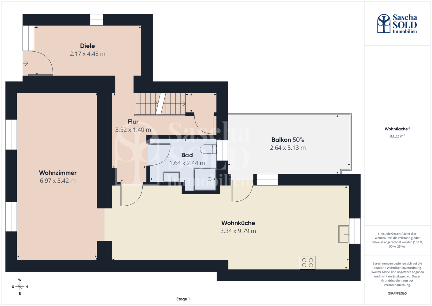 inklusive anteiliger Balkonfläche von 50%