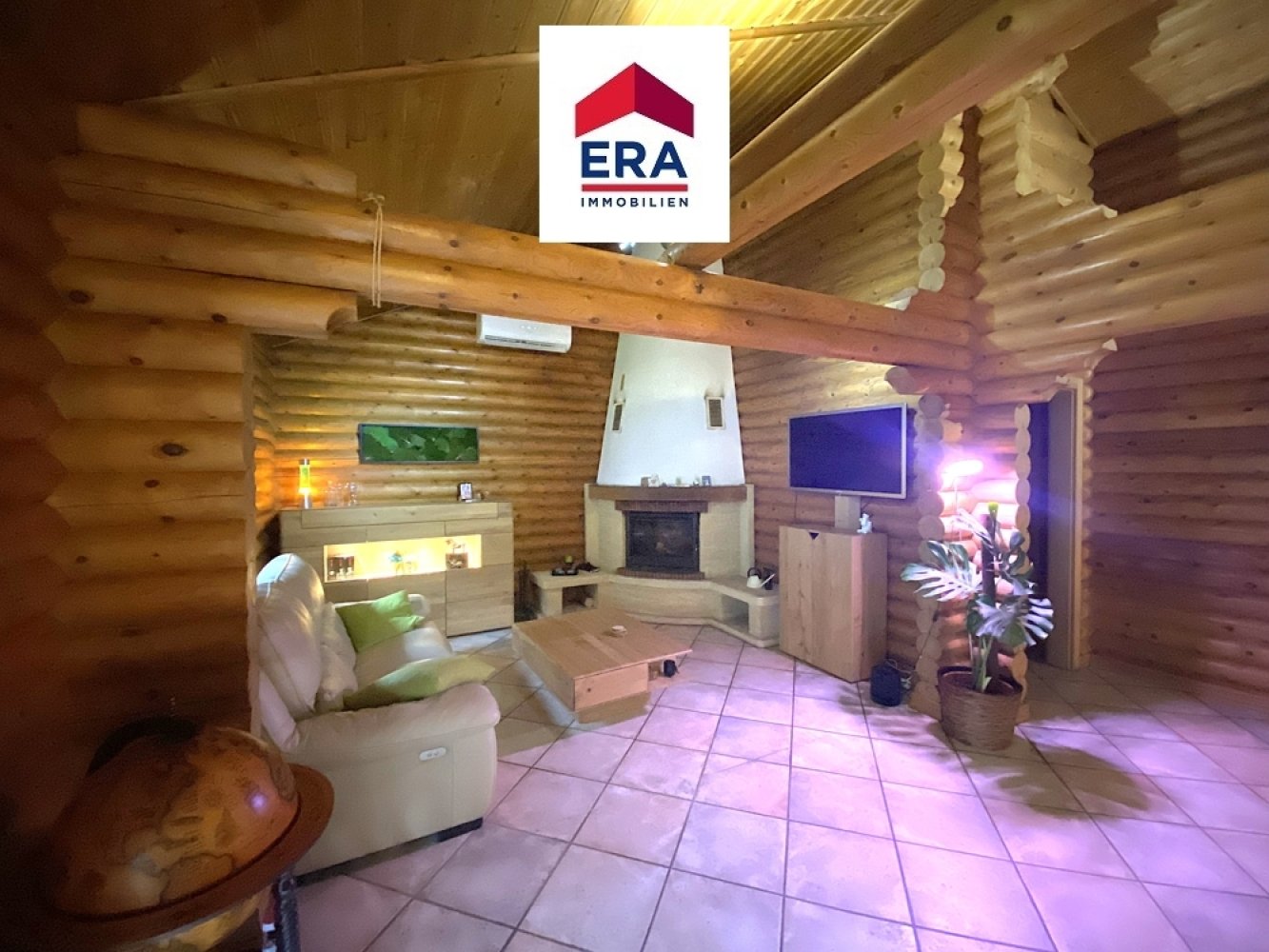 geheizt wird mit Holzkamin und 2 Split/Klimageräten,