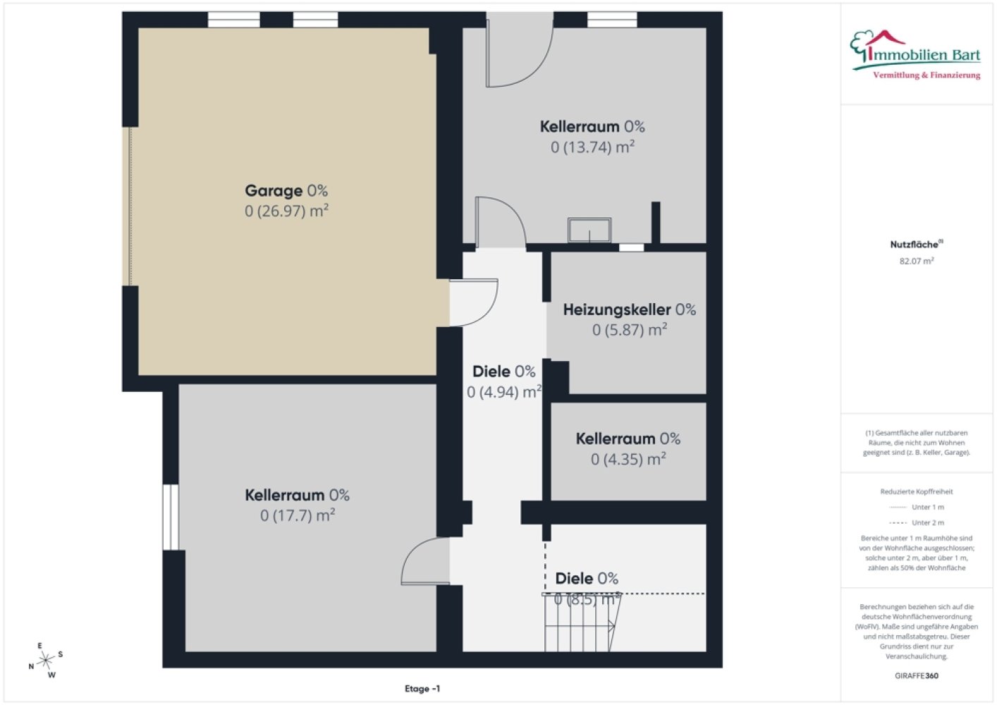 Flur,3 Kellerräume, Heizungskeller und Garage