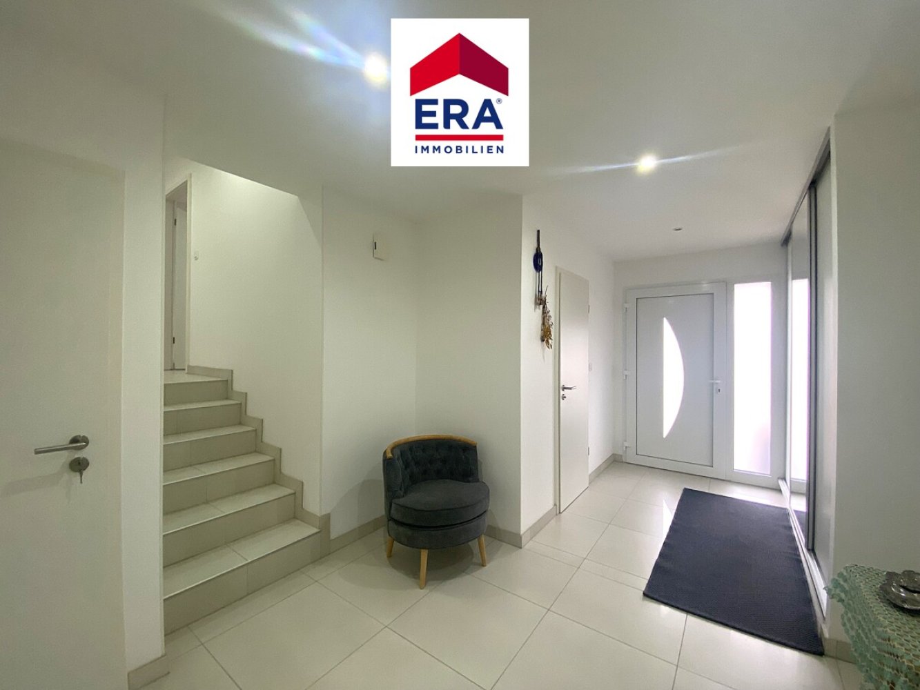 Das gesamte Haus wurde mit hellen Fliesen, Fußbodenheizung und elektrischen Rollläden versehen.