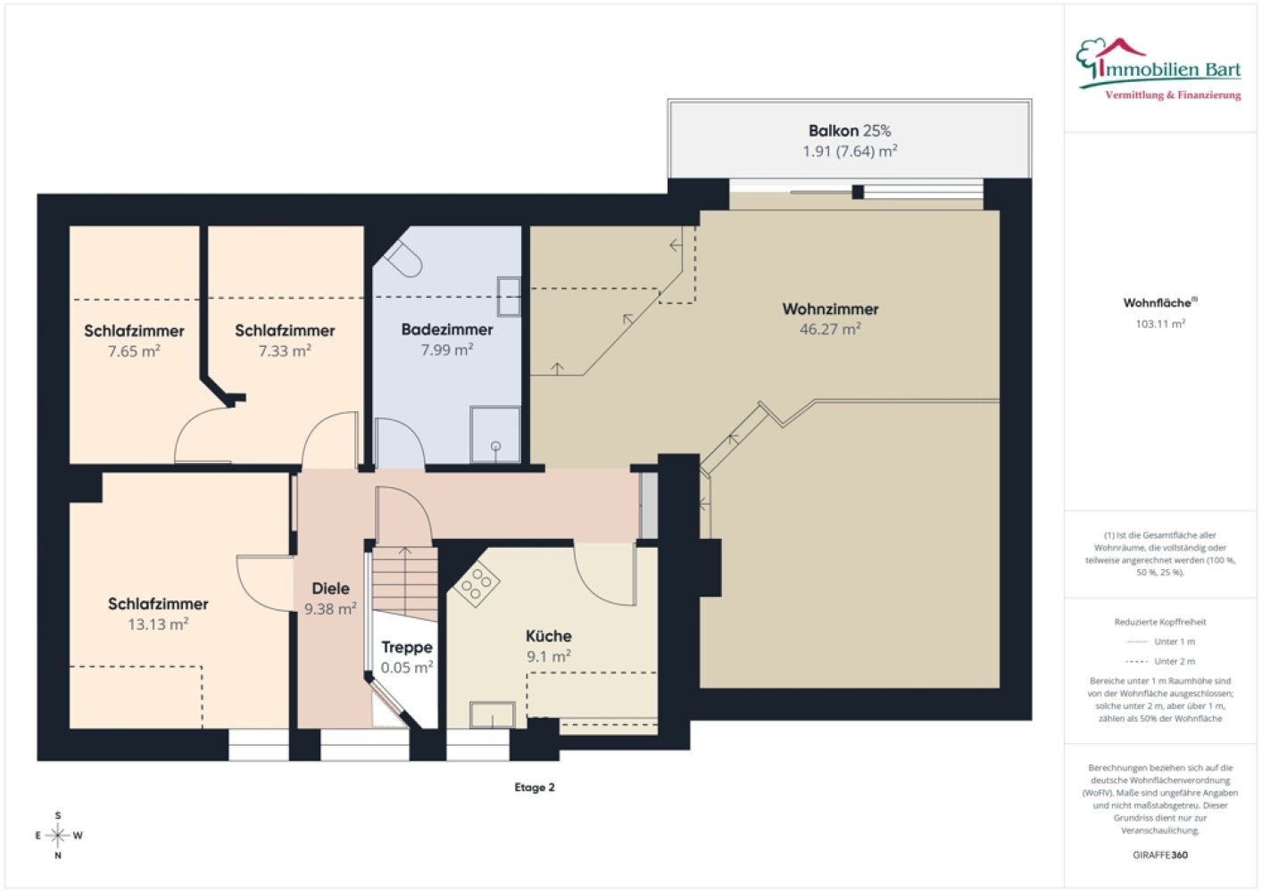 Die Raumaufteilung ist wie folgt: