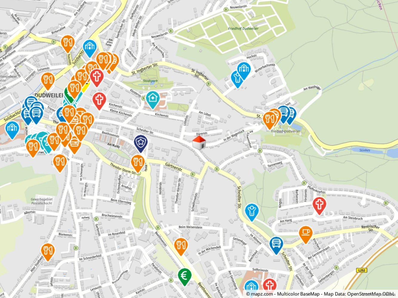 Infrastruktur und BildungDudweiler ist gut an das Verkehrsnetz angebunden, sowohl durch Straßen als auch durch öffentliche Verkehrsmittel. Es verfügt über eine Vielzahl von Schulen, darunter Grundschulen, Kindergärten weiterführende Schulen und ein Gymnasium.