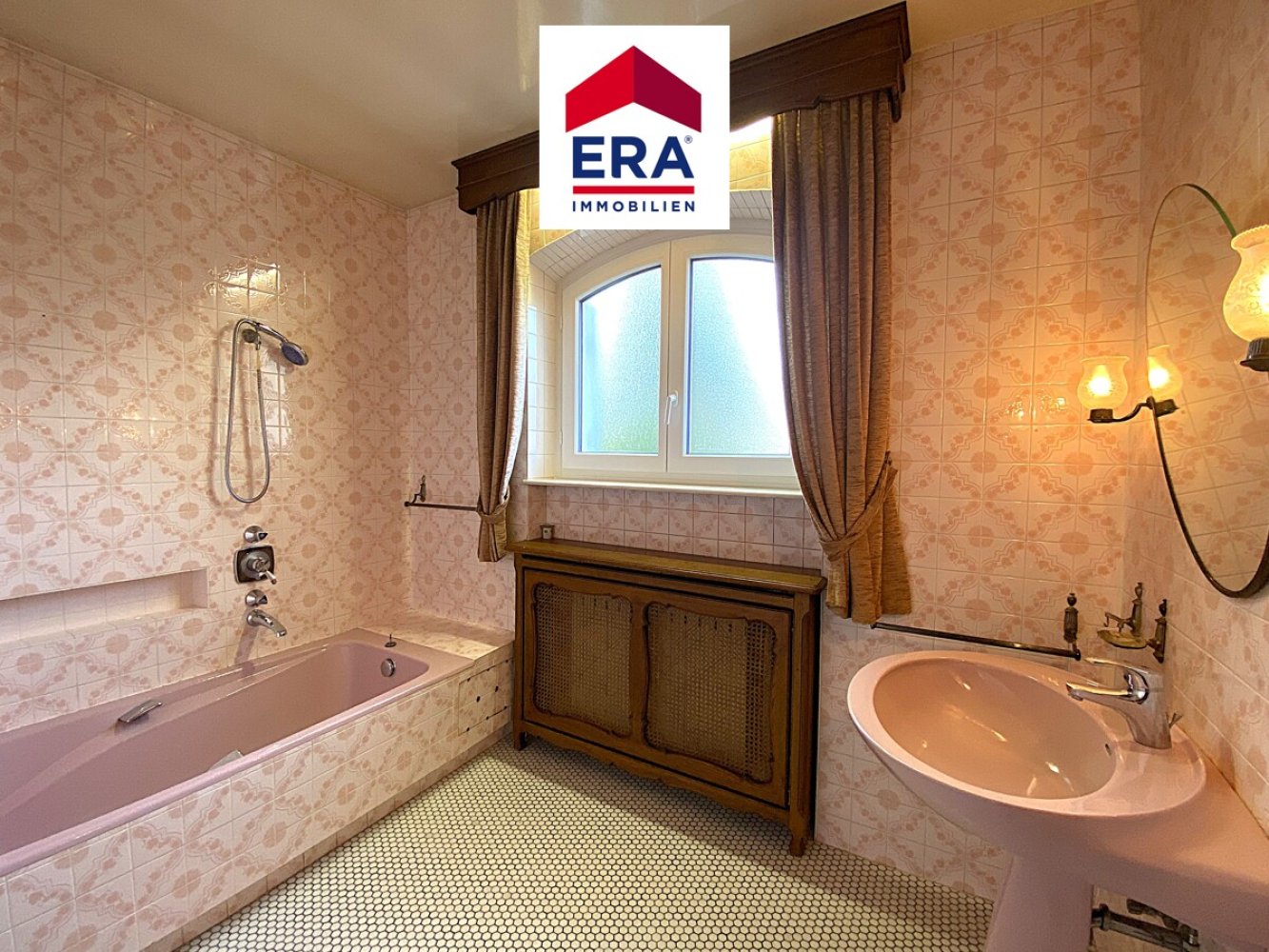 mit Fliesen und Parkett ausgestattet,