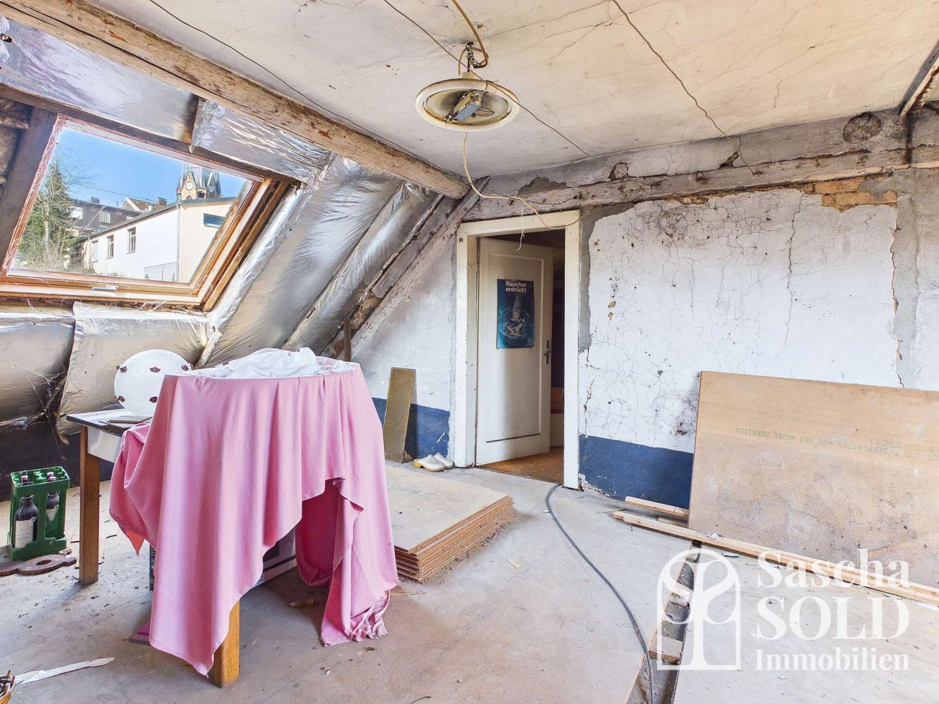 Eine Treppe führt in das Dachgeschoss, wo sich zwei weitere Räume befinden, die Ausbaupotenzial bieten. Eine Nutzung ist vorbehaltlich einer Abstimmung mit dem zuständigen Bauamt möglich.