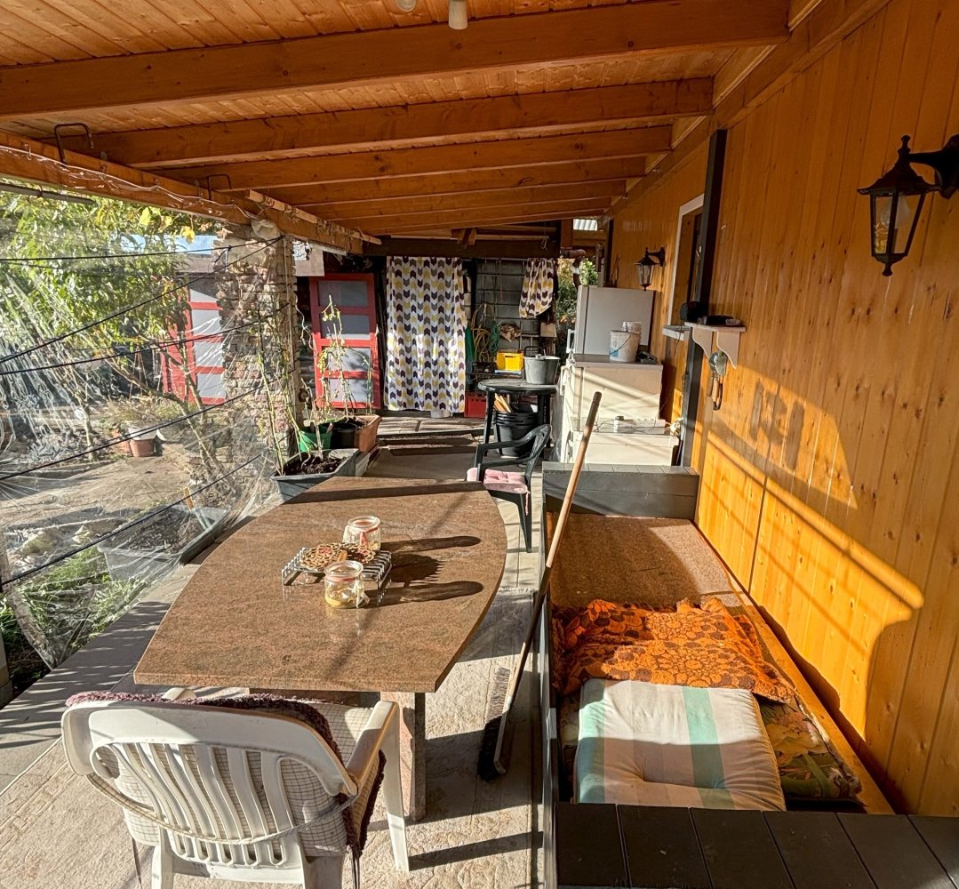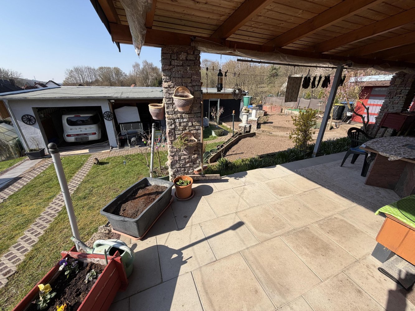 Der Außenbereich ist ein echtes Highlight: Der überdachte Eingang offeriert eine gemütliche Sitzecke, die bequem vom Esszimmer per Schiebetür erreichbar ist und an heißen Sommertagen eine schattige Sitzgelegenheit bietet. Die überdachte Süd-West Terrasse lädt mit ihrem Blick in den liebevoll und strukturiert angelegten Garten zum Verweilen ein. Ob entspannter Nachmittag im Liegestuhl oder gemütlicher Grillabend – hier erleben Sie Natur hautnah. Der angelegte Nutz- und Ziergarten, gepflegte Rasenflächen und vier große Regenwassertanks (je 1.000 Liter) zur Bewässerung unterstreichen den durchdachten und nachhaltigen Charakter dieses Anwesens.