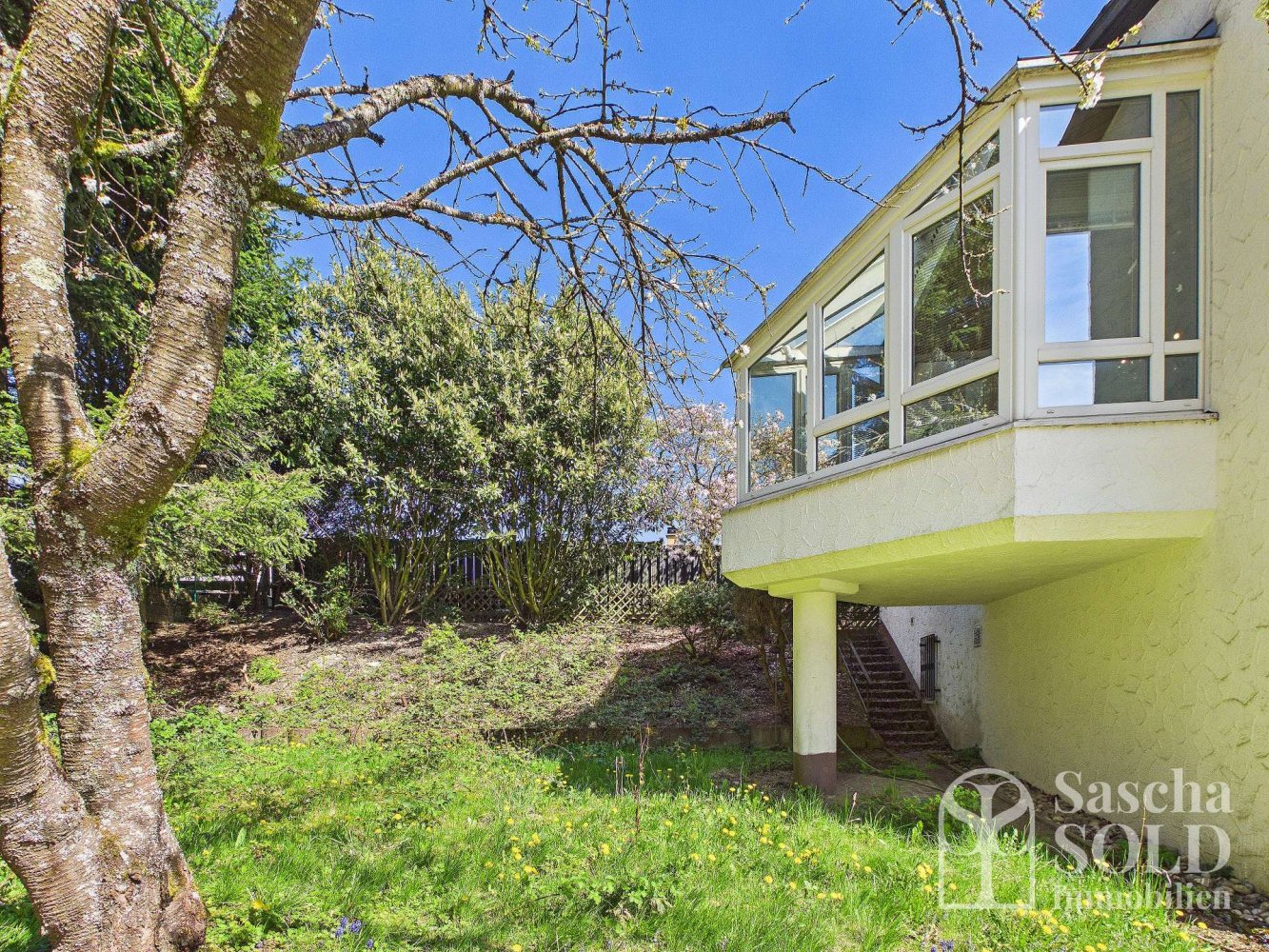 Die Außenanlagen sind großzügig angelegt und bieten einen direkten Übergang in die Natur, da das Grundstück unmittelbar an ein Waldgebiet angrenzt. Der Garten verfügt über einen überdachten Pool, der sanierungsbedürftig ist, sowie ein Gartenhaus, eine Teichanlage und einen gemauerten Grillkamin, die das Außenangebot ergänzen.