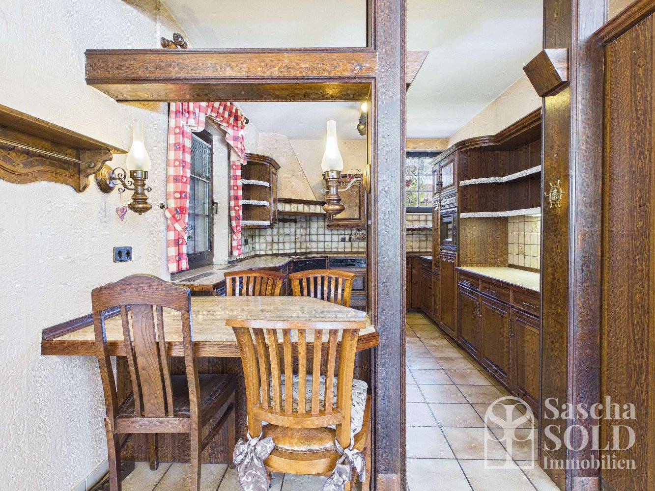 Angrenzend befindet sich zudem eine Bauernstube mit Kühlschrank und Zapfanlage, die sich ideal für gesellige Stunden eignet. Direkt gegenüber führt eine große Schiebetür auf einen Südwestbalkon mit Markise, von dem aus eine Treppe direkt in den Garten hinabführt.