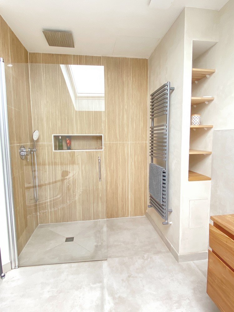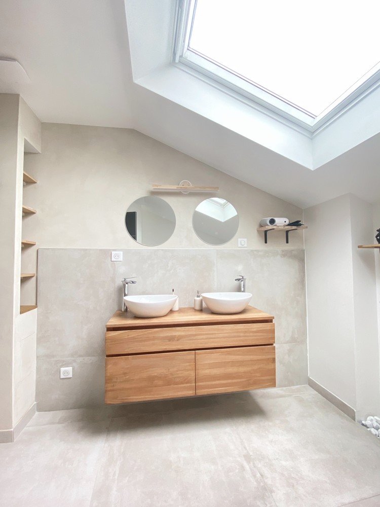 Im Erdgeschoss erwartet Sie ein großzügiger offener Bereich von rund 80m², der Wohnen, Essen und Kochen verbindet. Durch das offene Raumkonzept verschmelzen der Eingang, das Wohnzimmer und die Küche nahtlos miteinander. Die beeindruckenden Volumina und die außergewöhnliche Helligkeit prägen diesen Raum.