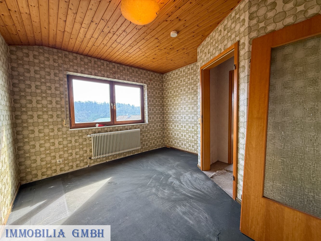 Die Immobilie ist vollständig geräumt und teilweise modernisiert, jedoch in einem renovierungsbedürftigen Zustand.