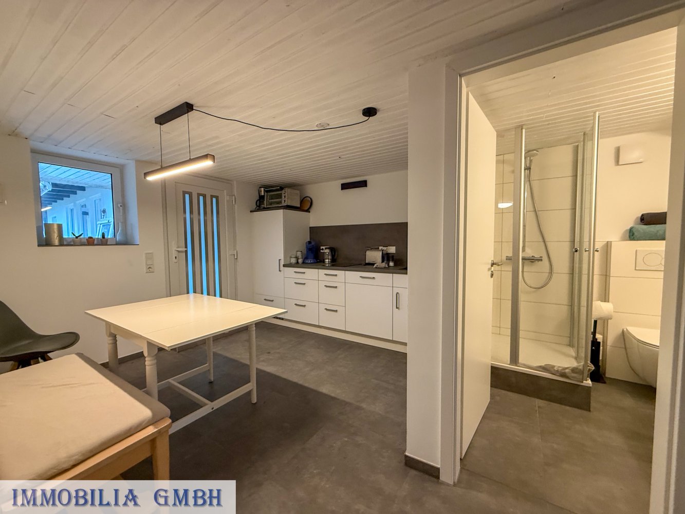 Im Keller des Gebäudes ist ein Lagerraum, ein Heizraum und ein großzügiger Unterstand unter der Treppe, welcher gut nutzbar ist. Der nach hinten freiliegende Teil wurde als Ferienwohnung mit separatem Eingang ausgebaut und in dem Jahr ca. 2025 komplett erneuert und renoviert.