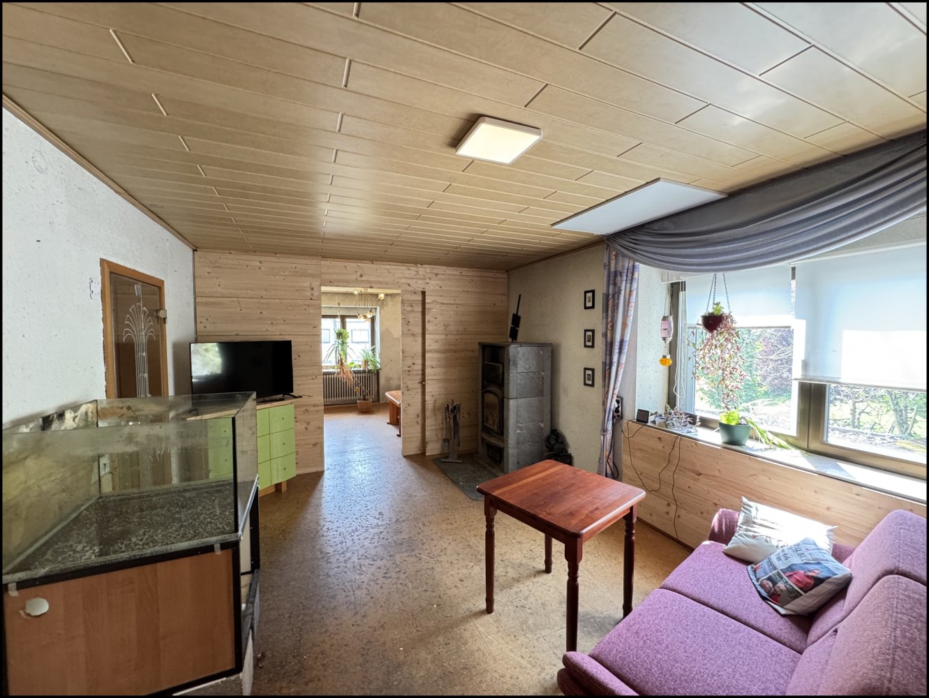 Auf ca. 135 m² Wohnfläche, verteilt auf zwei Etagen, stehen 6 Zimmer zur Verfügung, darunter 4 Schlafzimmer. Ergänzt wird das Raumangebot durch zwei Badezimmer sowie ein Gäste-WC – praktisch für Familien oder auch Mehrgenerationenwohnen. Die Ausstattung ist einfach, sodass eine umfassende Renovierung bzw. Sanierung sinnvoll einzuplanen ist.