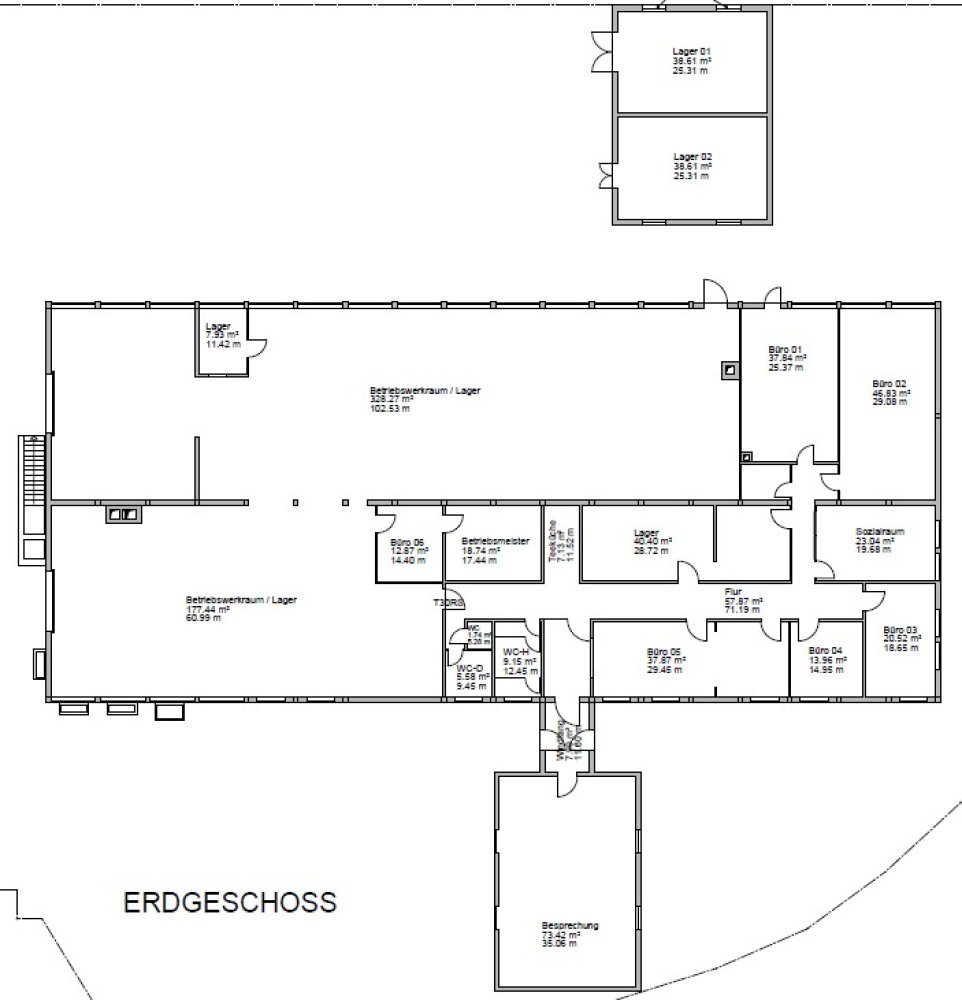 - Zwei große Betriebswerkhallen mit über 500 m² Fläche, ideal für Produktion, Werkstatt oder Lager