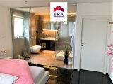 Über den Flur erreichen Sie den hellen Wohn- und Essbereich, dieser ist eingebettet in 2 schöne Außenbereiche, zur Wohn-Seite durch einen Balkon, zur Ess-Seite mit eingebauten Spiegel-Schiebetürschränken, durch einen gemütlichen Wintergarten, die offene Küche beinhaltet eine Einbauküche, des Weiteren gibt es ein Büro, ein Abstellraum, ein Gäste WC mit Waschbecken, ein Schlafzimmer mit en Suite Badezimmer (Dusche, Waschbecken und WC), welches durch eine raffinierte Glasschiebewand getrennt wird.