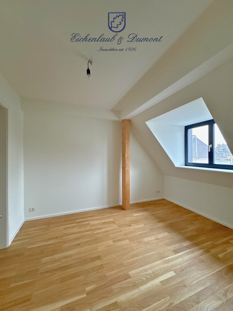 Nach dem Eingang, den Sie im 2.OG (Dachgeschoss) über das innenliende Treppenhaus des Gebäudes erreichen, befinden Sie sich im Eingangsflur, der alle Räume dieser Ebene erschließt.