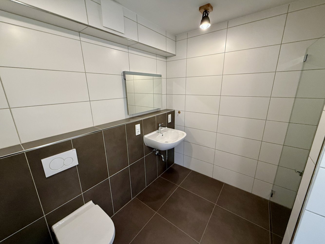 Das stilvolle Badezimmer ist mit einer bodengleichen Dusche ausgestattet und überzeugt durch sein modernes Design. Das Schlafzimmer bietet Ihnen einen angenehmen Rückzugsort.