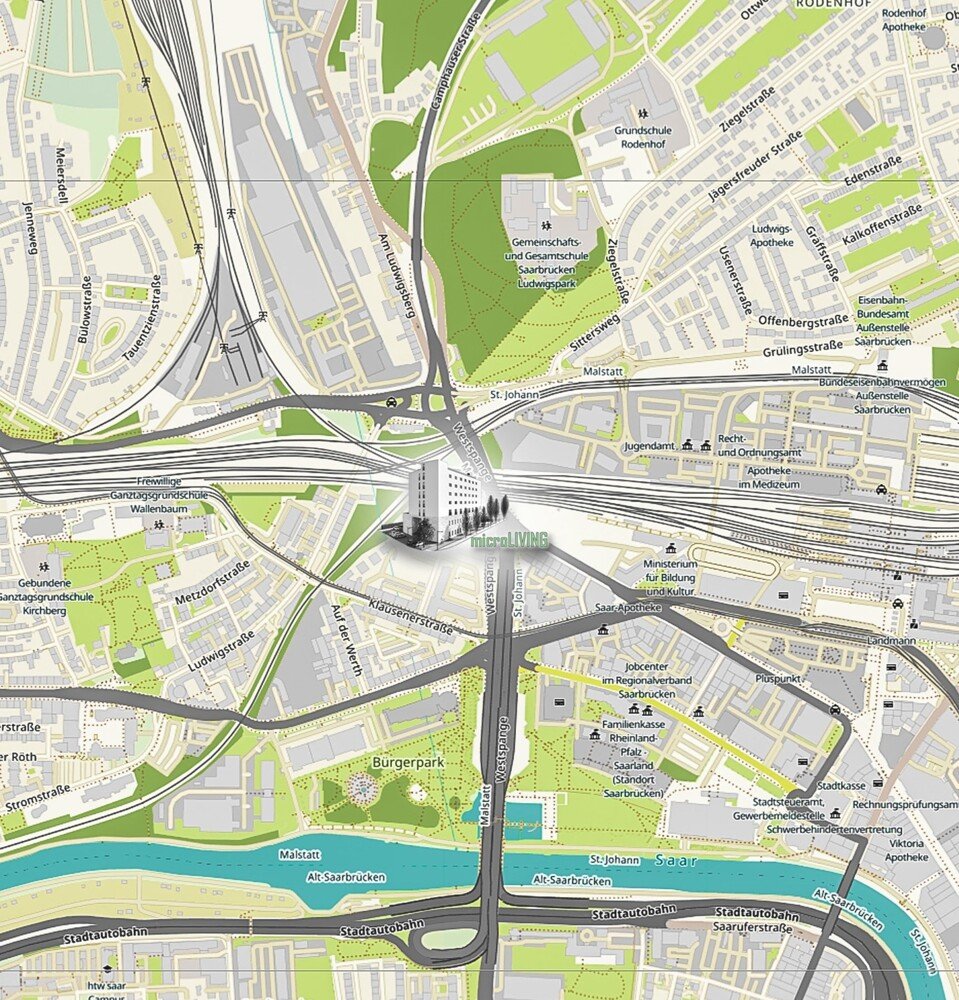 Unsere angebotenen Wohnungen befinden sich nahe der City von Saarbrücken. Die Fußgängerzone ist in 3-4 Minuten zu Fuß erreichbar. Das Objekt ist umgeben von einem vielfältigen Angebot an geschäftlichen Aktivitäten unterschiedlichster Ausrichtung, Ladengeschäfte, Kaufhäuser, Banken, etc..