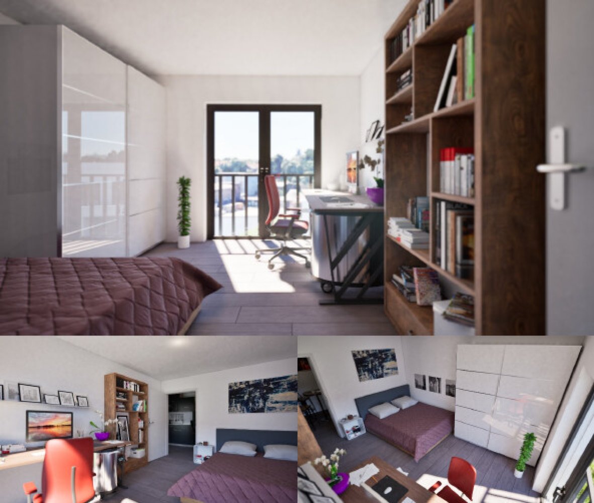 Es handelt sich um ein Wohnheim mit sechs Etagen, wobei ab dem 3. Obergeschoss jeweils 8 Studenten-Appartements pro Etage fertiggestellt werden.