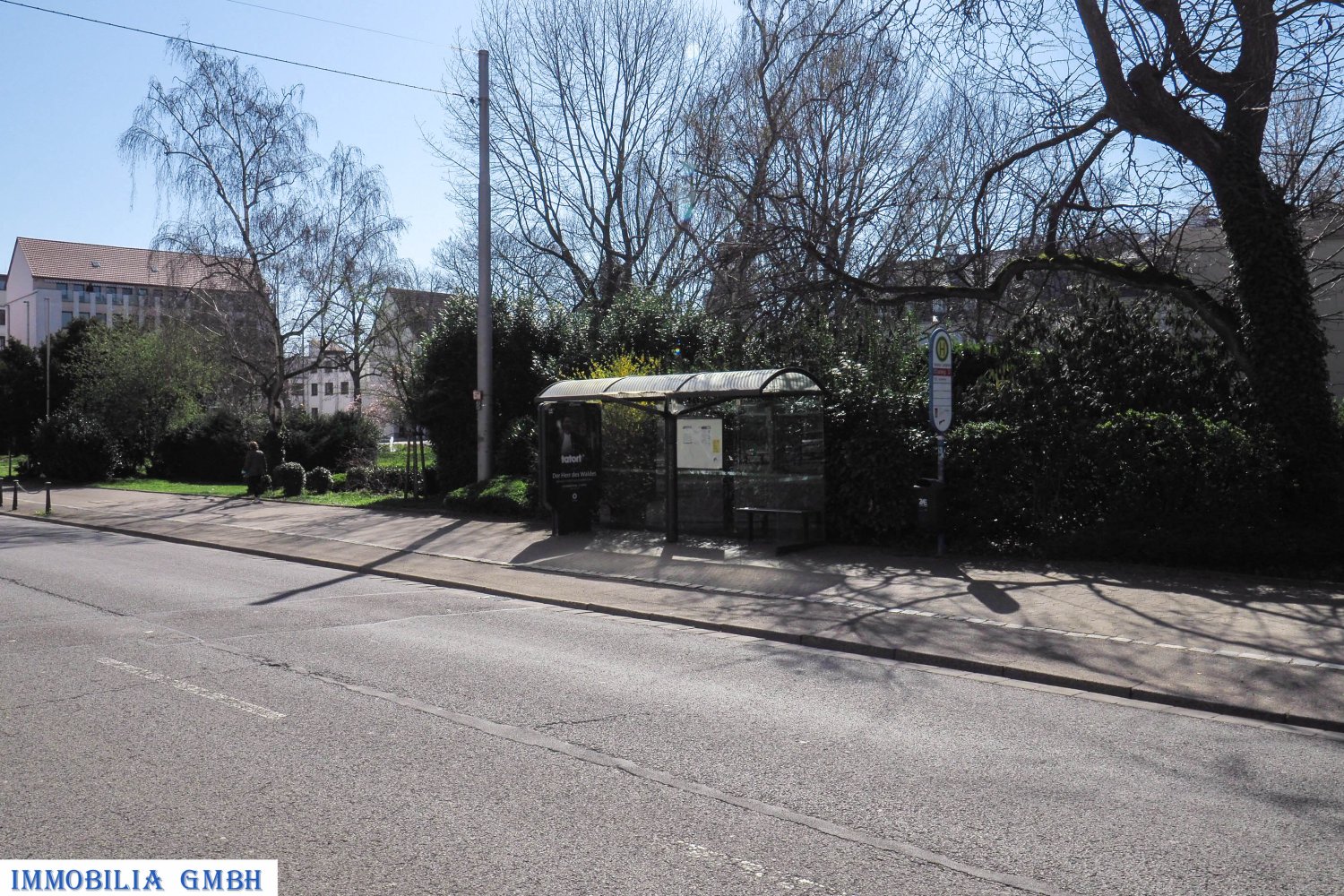 - Eine Bushaltestelle befindet sich direkt auf der gegenüberliegenden Straßenseite.