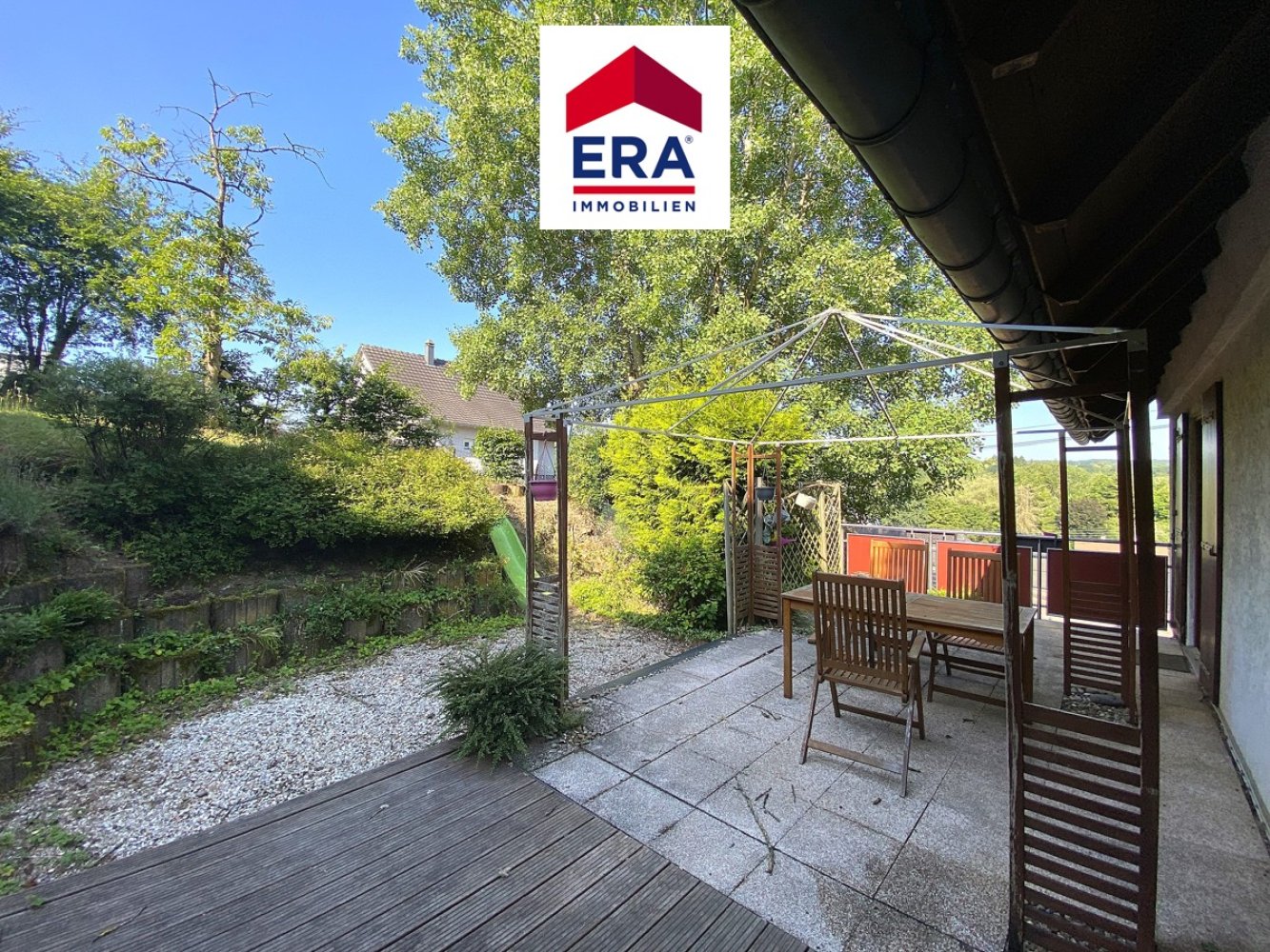 Die Terrasse mit Garten in Hanglage verfügt über einen wunderschönen Weitblick, hier ist Ihnen eine Erholung in ruhiger Atmosphäre garantiert.