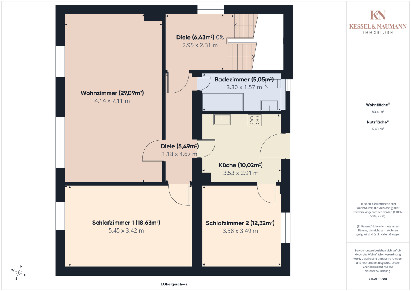 Obergeschoss, 80,60 qm vermietet für 510€ Kaltmiete/Monat: