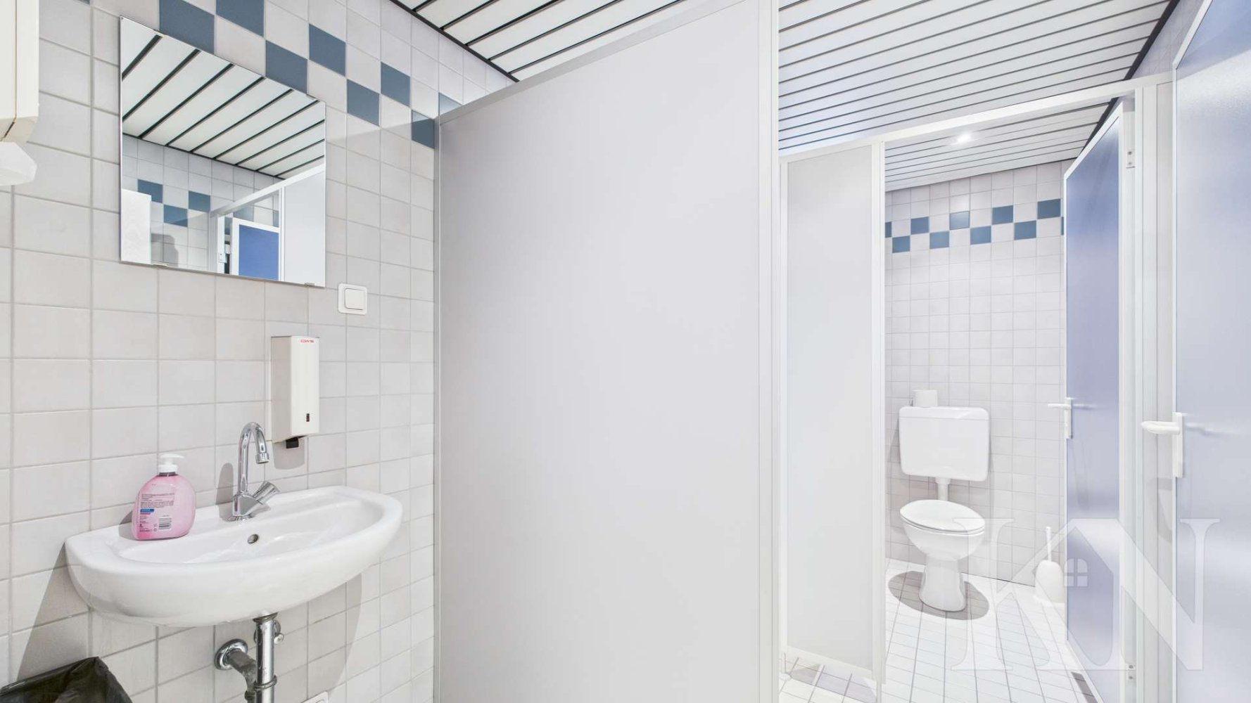 Die sanitären Anlagen sind gepflegt, funktional und auf jeder Etage getrennt nach Damen und Herren vorhanden. Ergänzend stehen im Untergeschoss zwei separate Kellerräume zur Verfügung, die bereits in der Miete enthalten sind und sich ideal als Archiv- oder Lagerräume nutzen lassen.