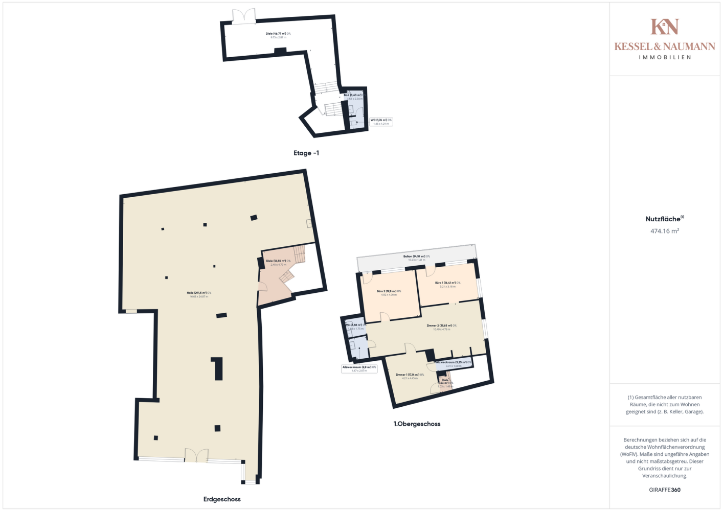 Neben- und Lagerflächen im Untergeschoss: ca. 52,16 m²