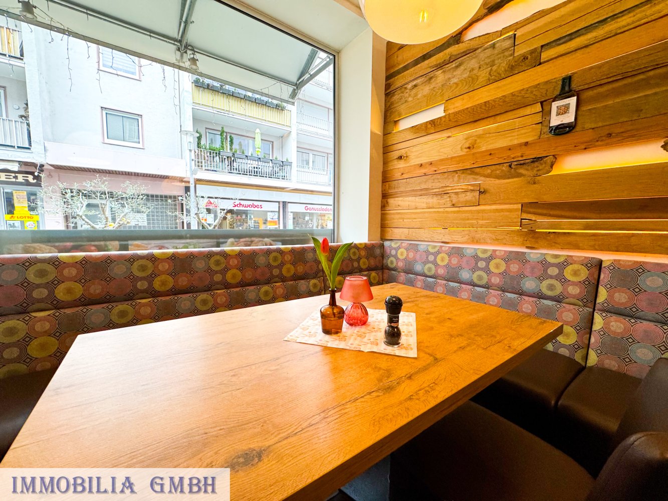 Der Innenbereich bietet Platz für ca. 60 Gäste und überzeugt durch ein durchdachtes Design- und Beleuchtungskonzept, das eine einladende und hochwertige Atmosphäre schafft. Ergänzt wird das Angebot durch eine ca. 30 m² große Terrasse in der Fußgängerzone mit etwa 20–25 Außenplätzen sowie eine zusätzliche Außentheke für den Eisverkauf, die insbesondere in den Sommermonaten für zusätzliche Frequenz sorgt.